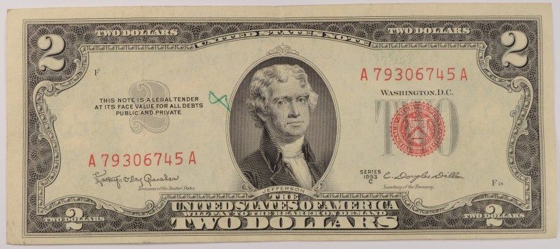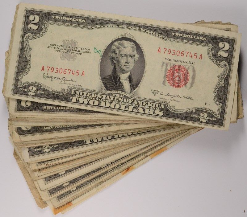 ( 75 ) $2.00 U.S. RED SEAL NOTES 1953 AND OLDER, AVERAGE CIRC.