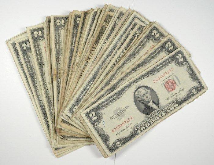 75-$2 RED SEAL CURRENCY, AVG CIRCULATED CONDITION