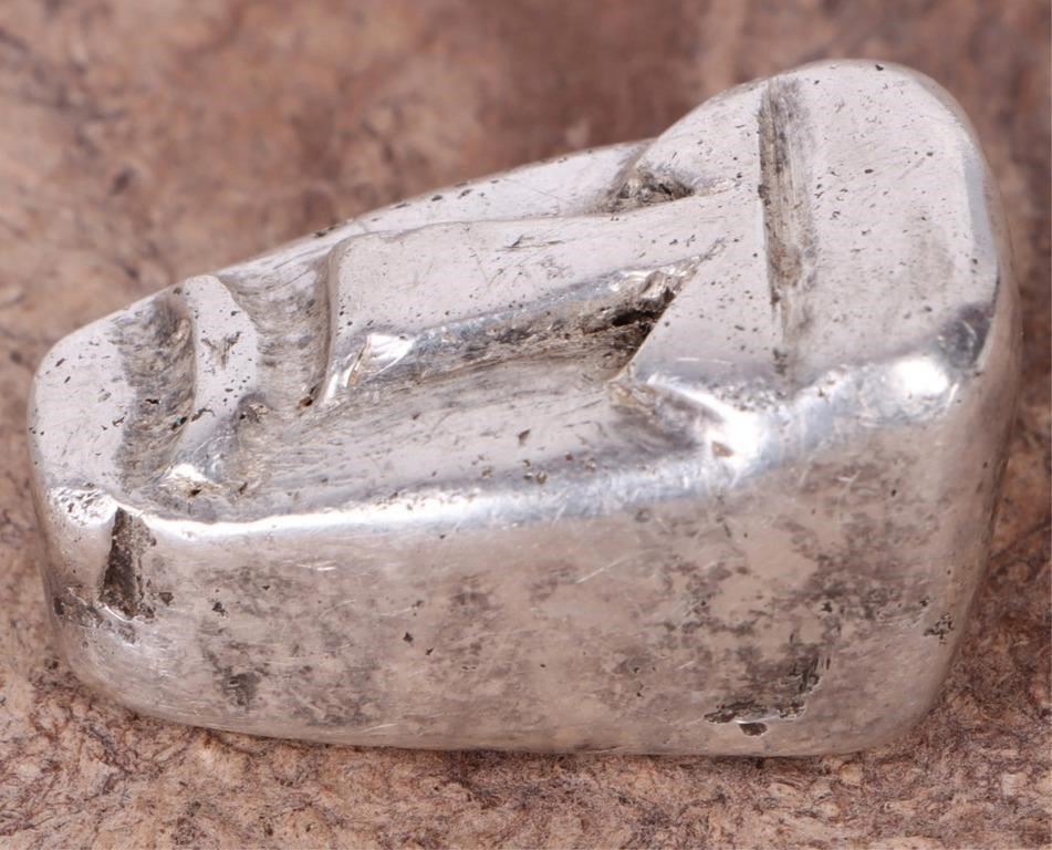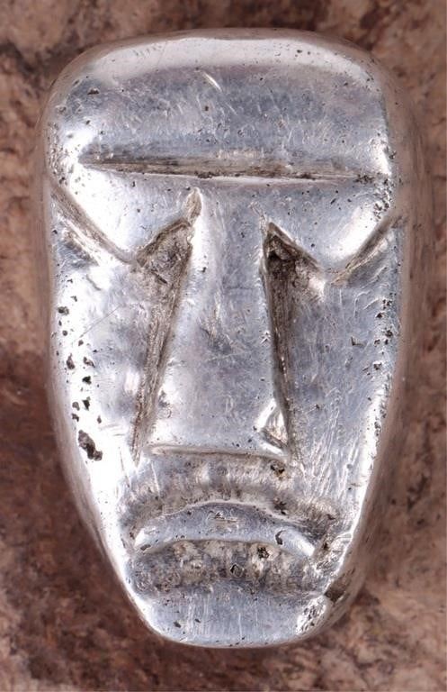 75.7 grams of fine silver shaped into a tribal mask/face.