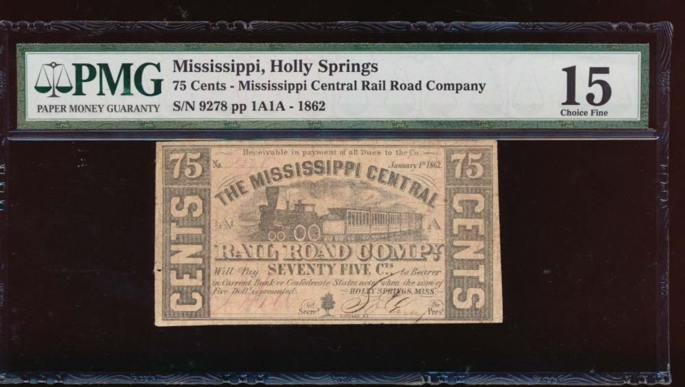 One 75 Cent Mississippi Holly Springs Obsolete Note PMG 15.