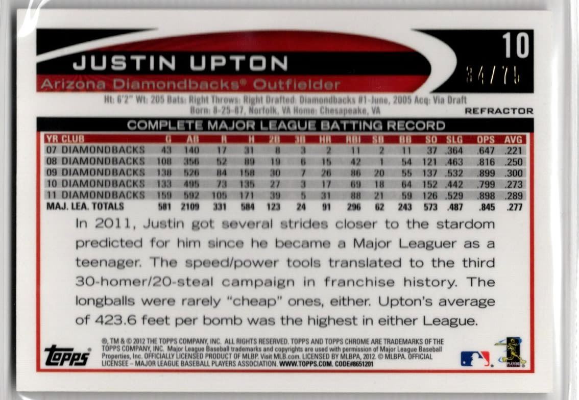 /75 Justin Upton 2012 Topps Chrome Sepia Refractor #10