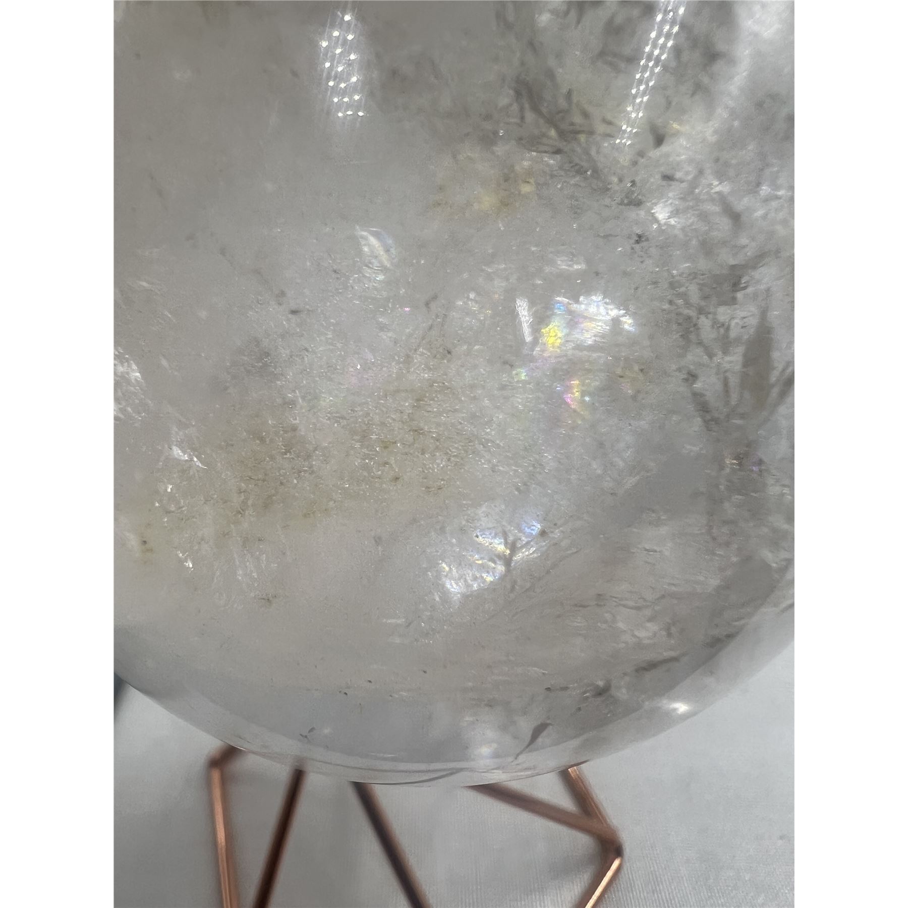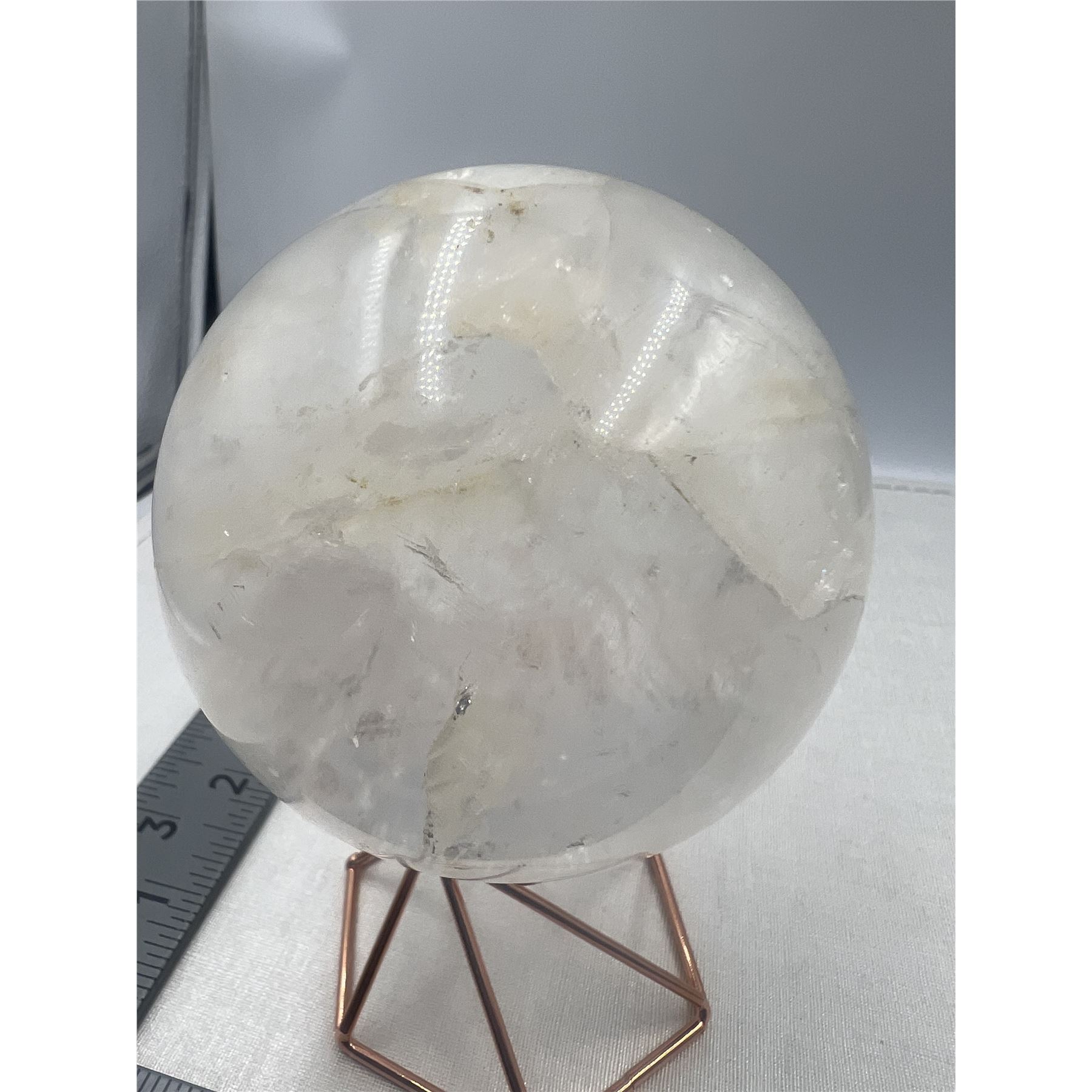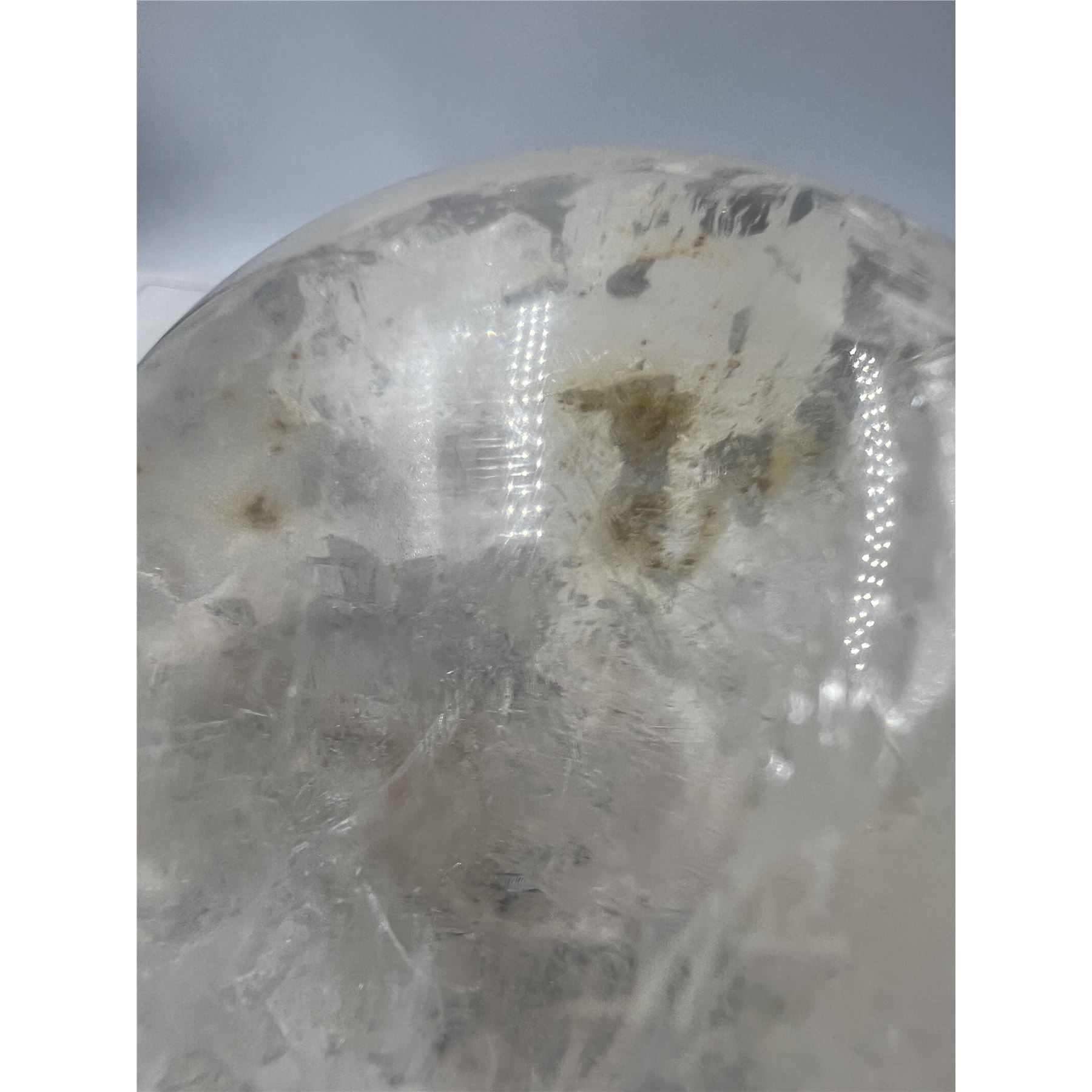 75 MM LARGE CLEAR QUARTZ SPHERE WITH YELLOW INCULSION.