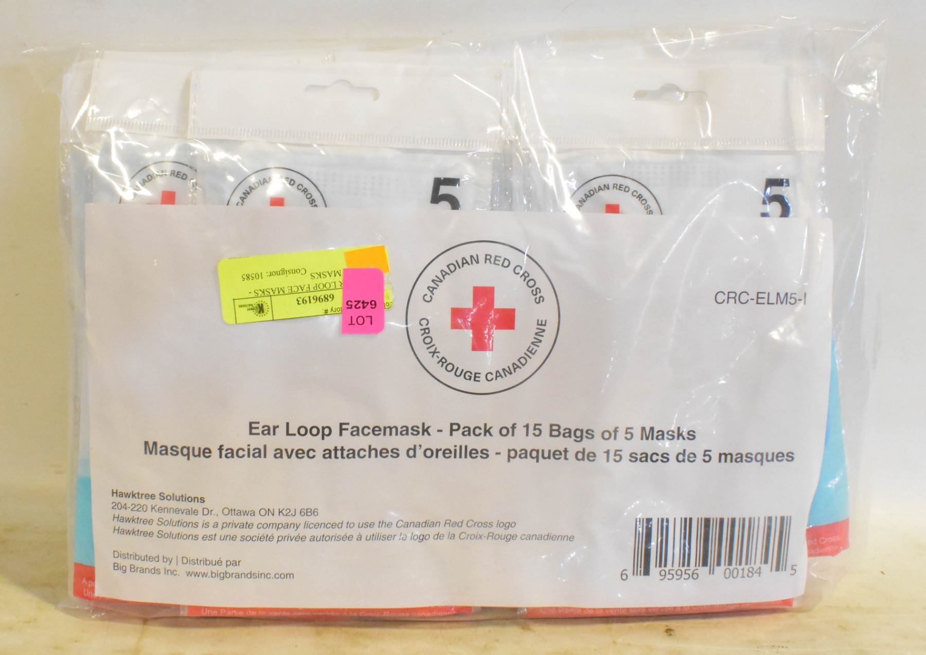 75 NEW EAR LOOP FACE MASKS - 15PKS OF 5 MASKS