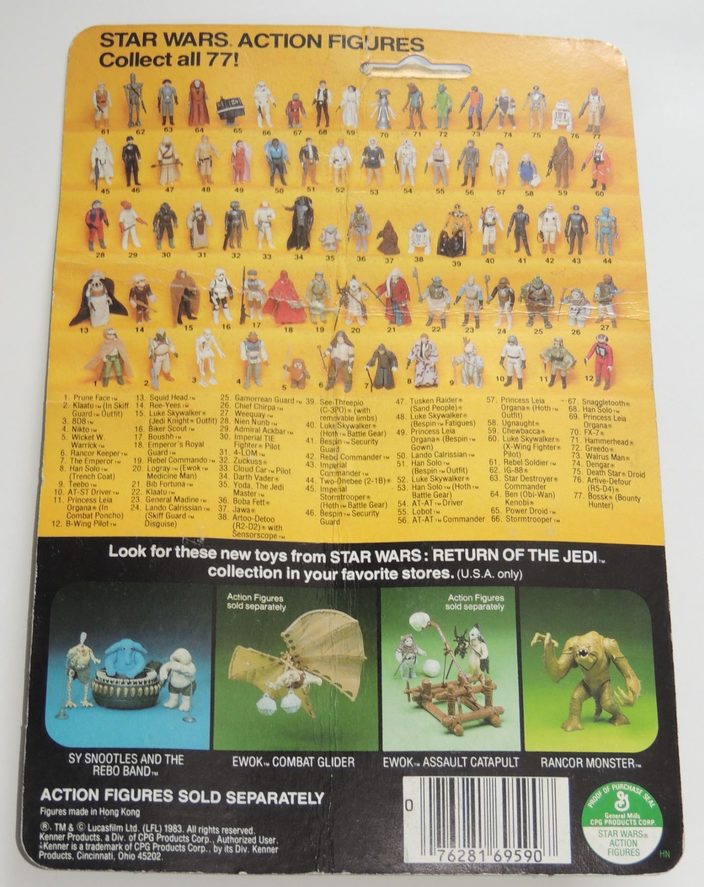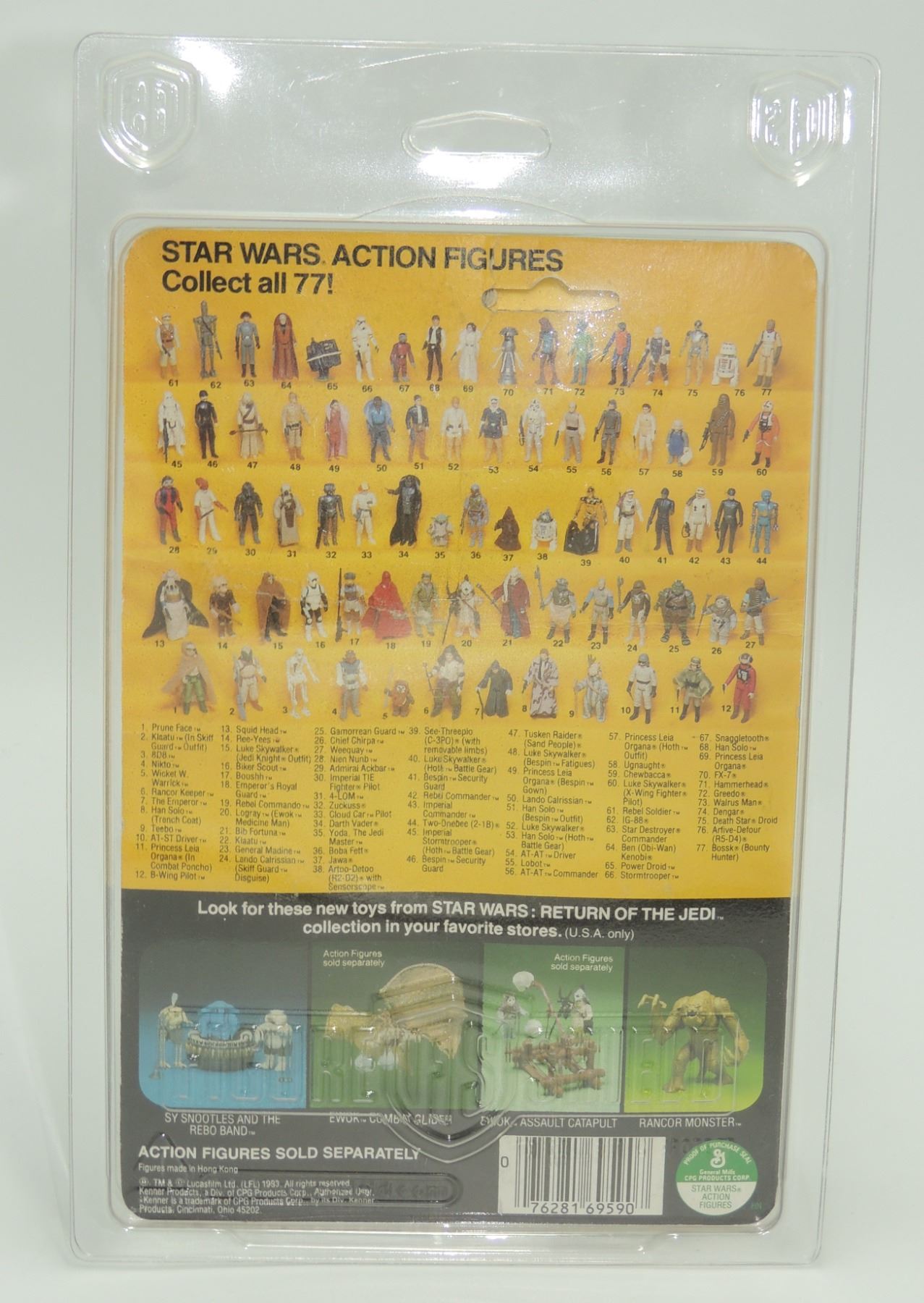 CARDED FIGURE 77 BACK WORN CARD STAR WARS RETURN OF THE JEDI KENNER ACTION FIGURE COMPLETE W/ PROTECTIVE CASE