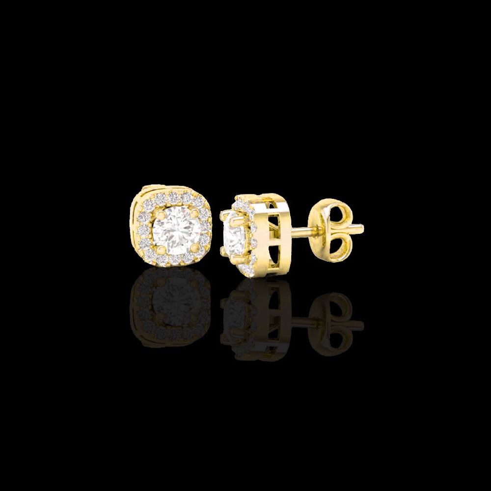.75 ctw Micro Pave VS/SI Diamond Earrings Designer Halo 18K Yellow Gold