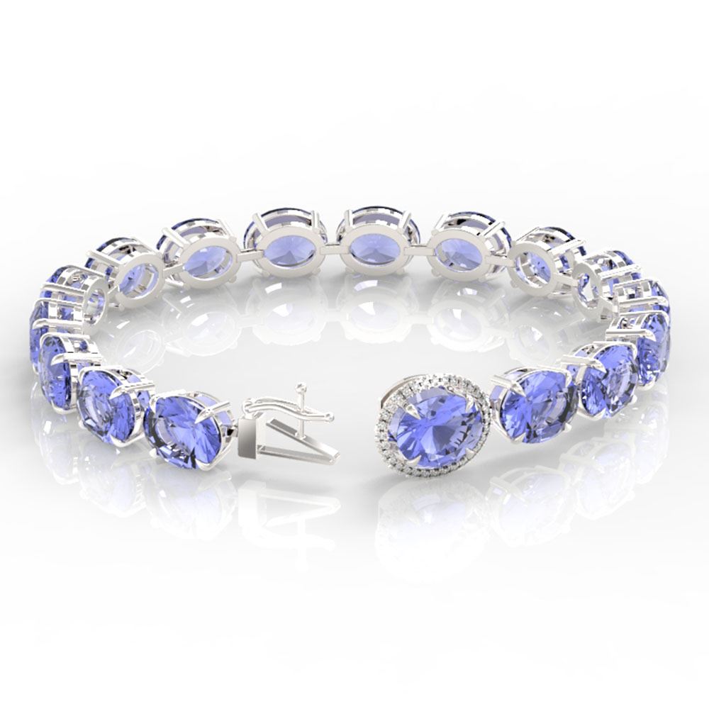 REF-1236W4H - SKU: 22280 ---- 75 ctw Tanzanite & Micro Pave Diamond Bracelet 14k White Gold