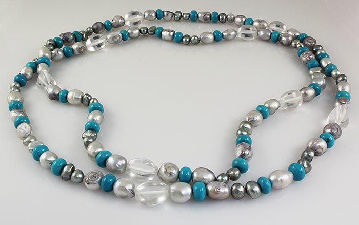 23 INCHES LONG CONTINUOUS NECKLACE MIX OF PEARLS, TURQUOISE AND BEADS GEMSTONE