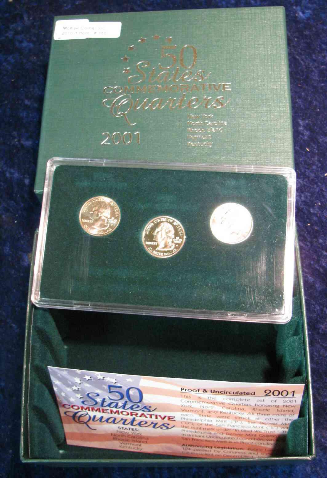 750. 2001 P, D, S BU & Proof Kentucky Statehood Quarter Set. Encased.
