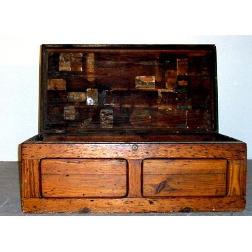 Fabulous Early 19th Century Pine Traveling Trunk With Old Post Cards on The Lid!