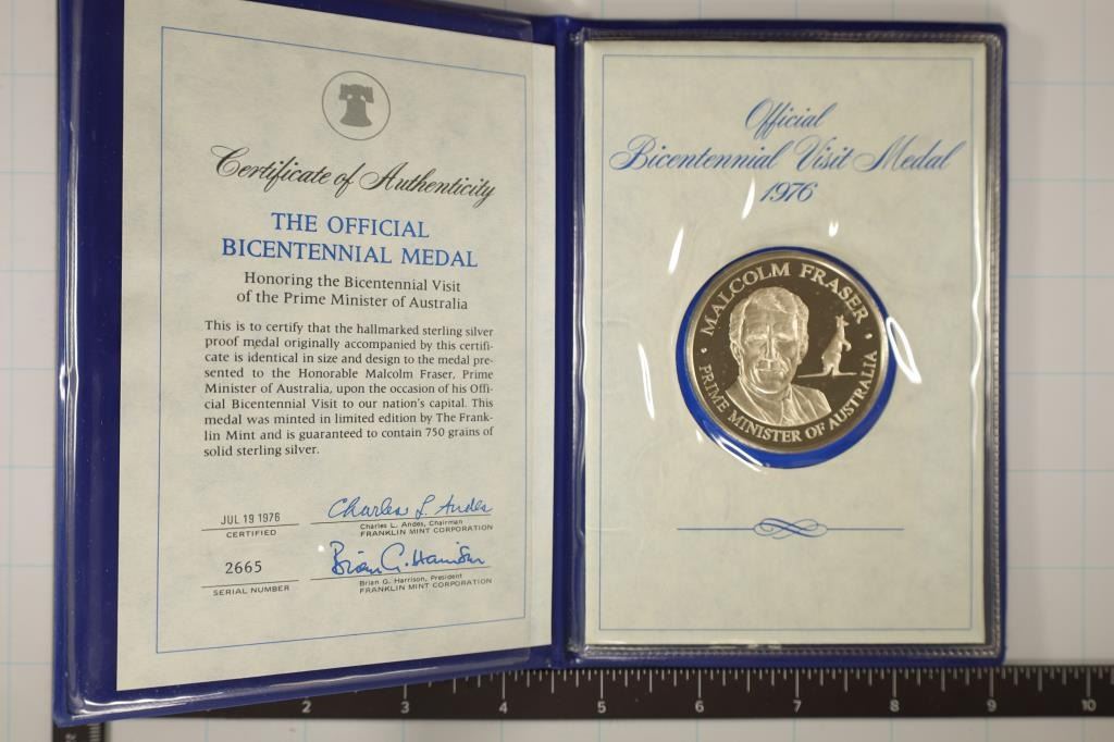 MEDAL COMMEMORATING THE VISIT OF THE PRIME MINISTER OF AUSTRALIA IN BLUE FOLIO WITH CERTIFICATE
