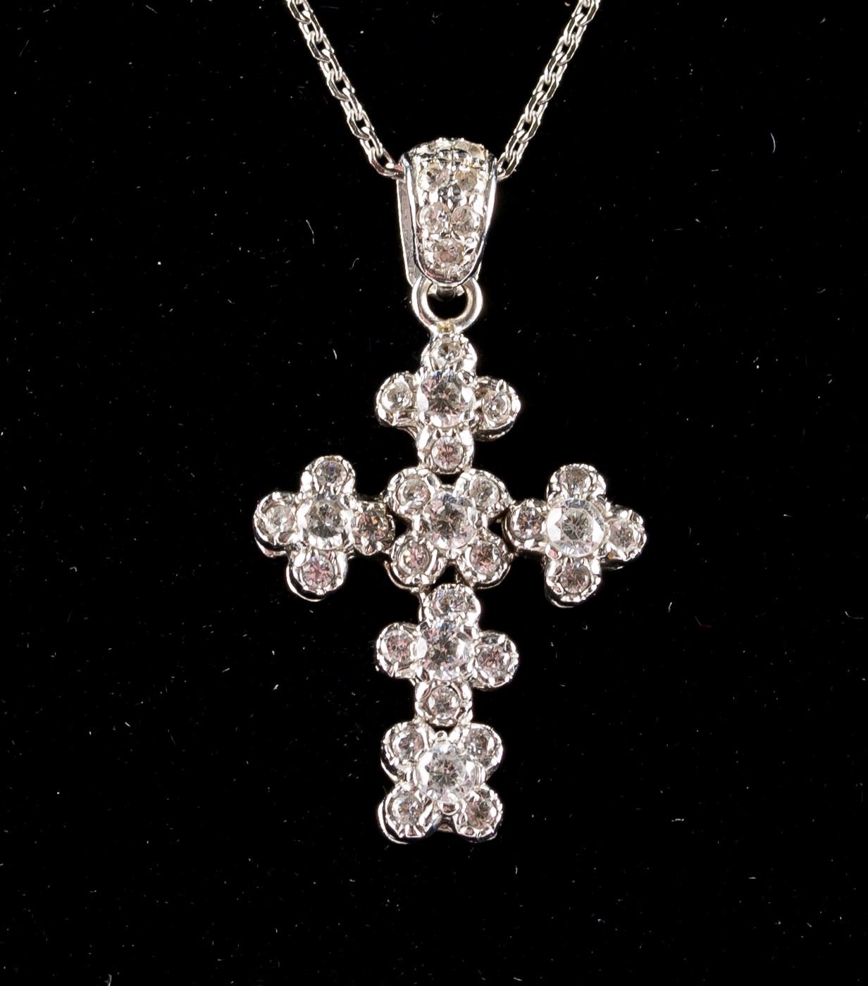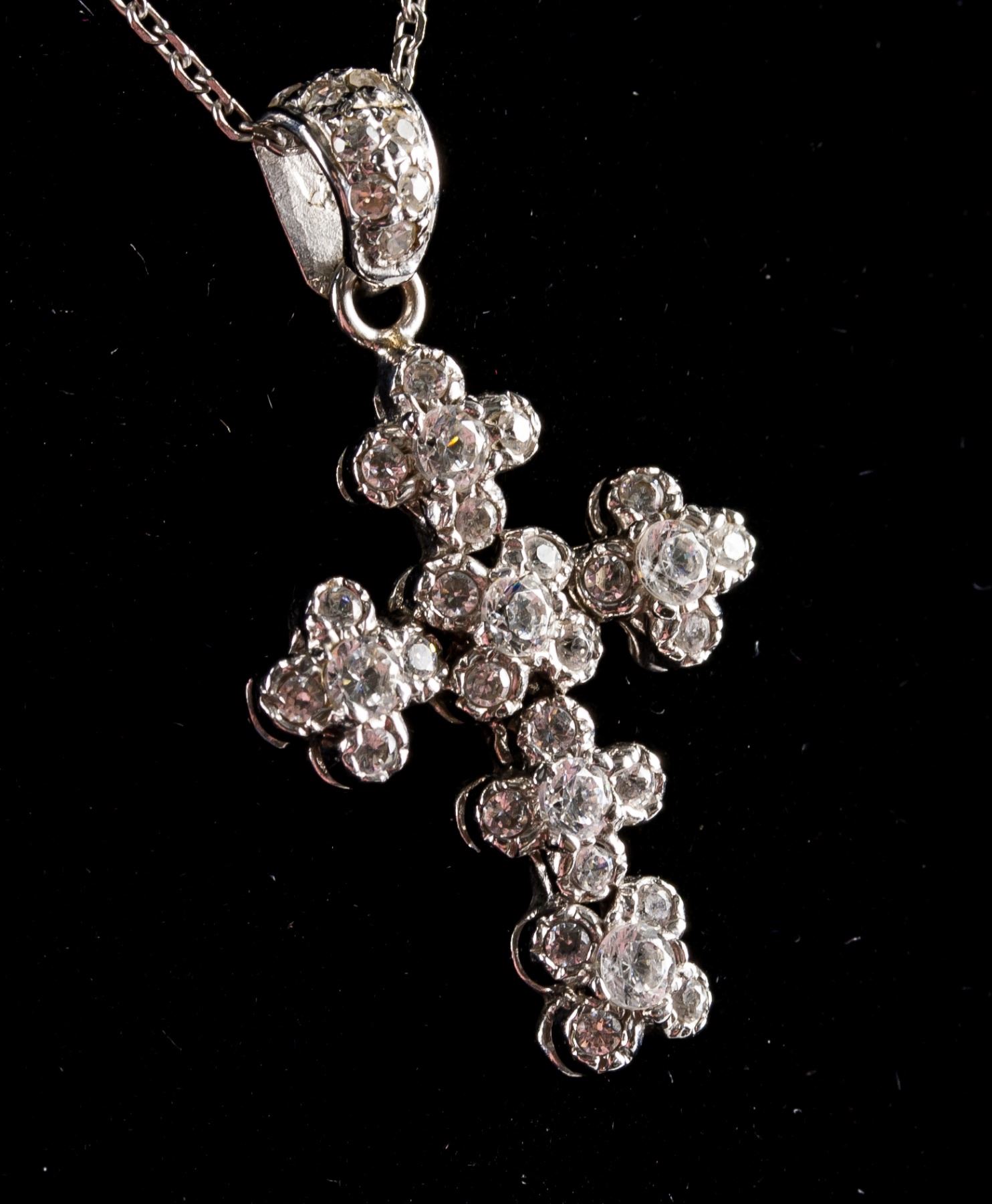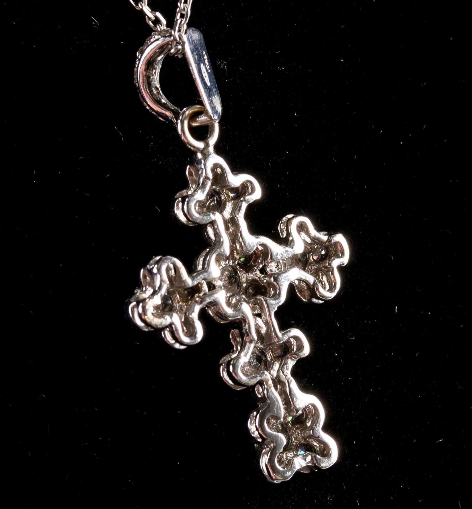 Stamped 14k white gold cross necklace. Set with diamonds. 26 cm, 5 grams