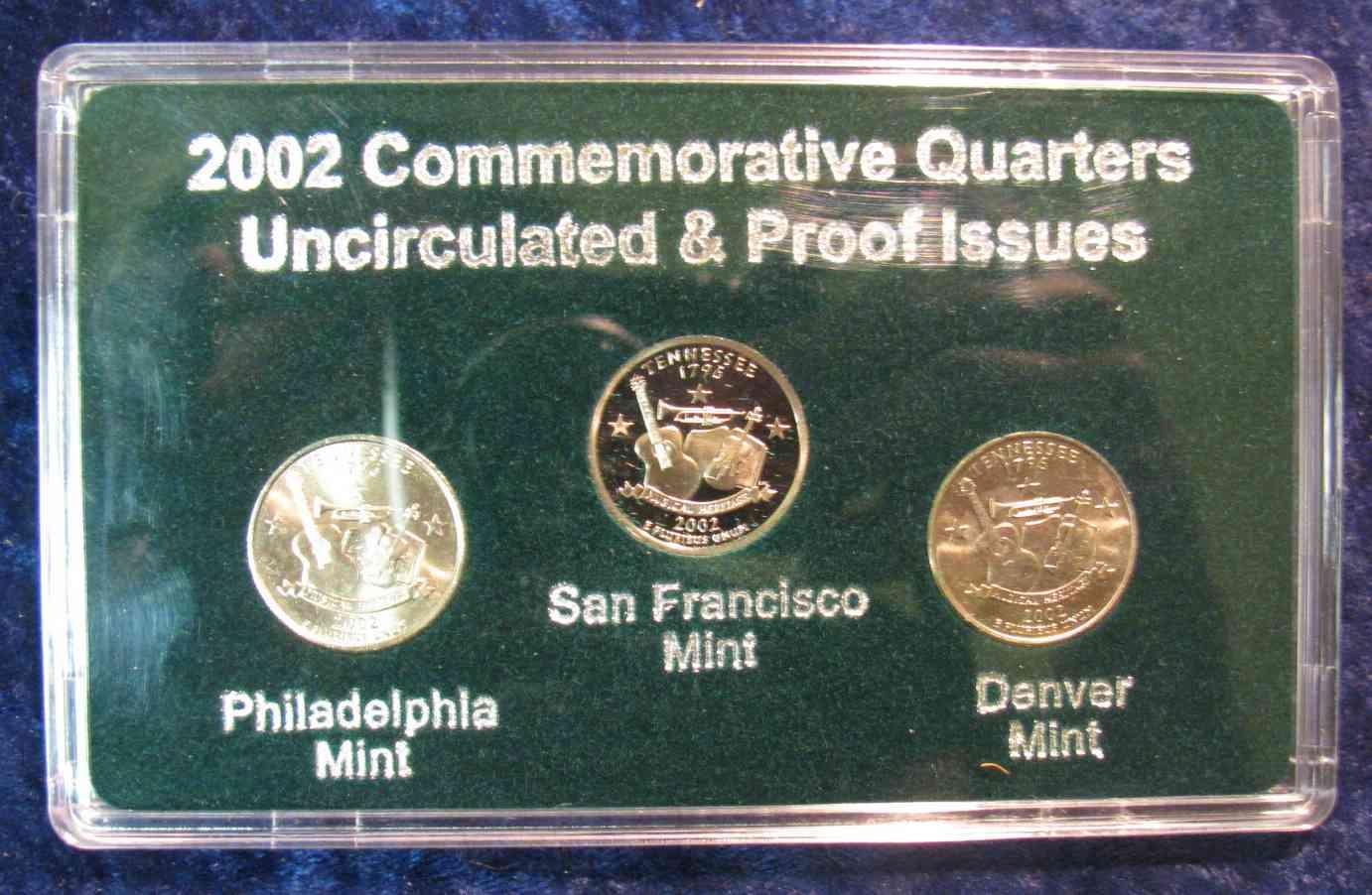 751. 2002 P, D, S BU & Proof Tennessee Statehood Quarter Set. Encased.