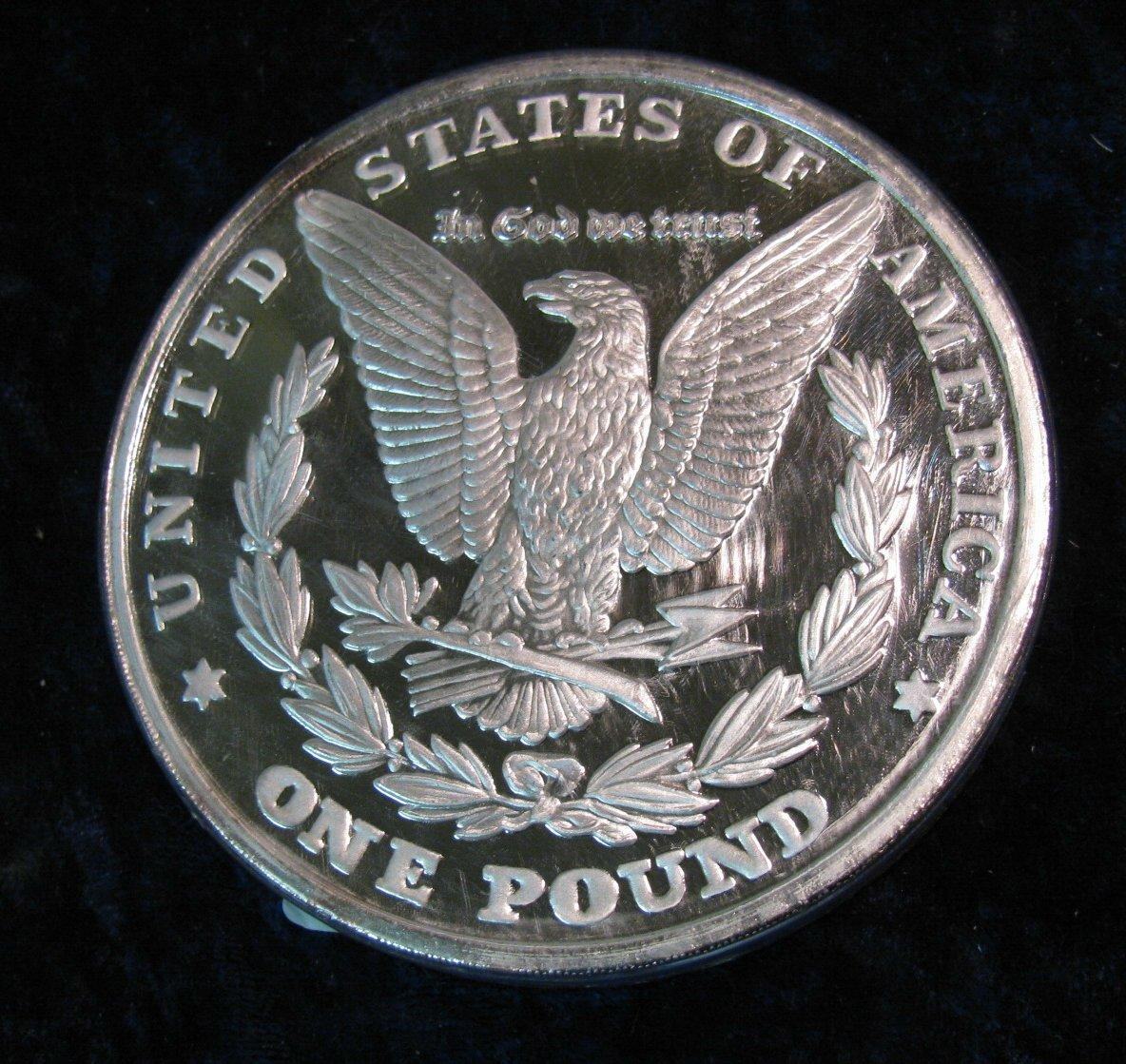 754. 1878 Morgan Dollar One Pound Proof Ingot serial numbered on the edge 50123.