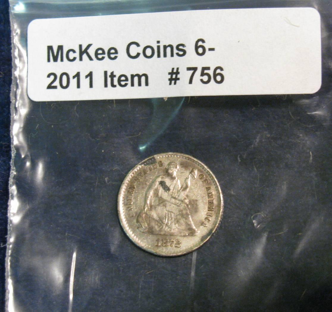756. 1872 S U.S. Seated Liberty Half Dime. Reverse dinger.