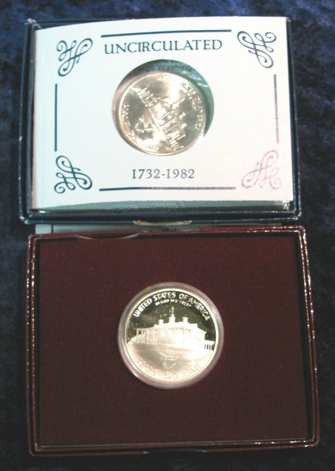 756. 1982D Unc. & 82S Proof George Washington Com. Half Dollars.