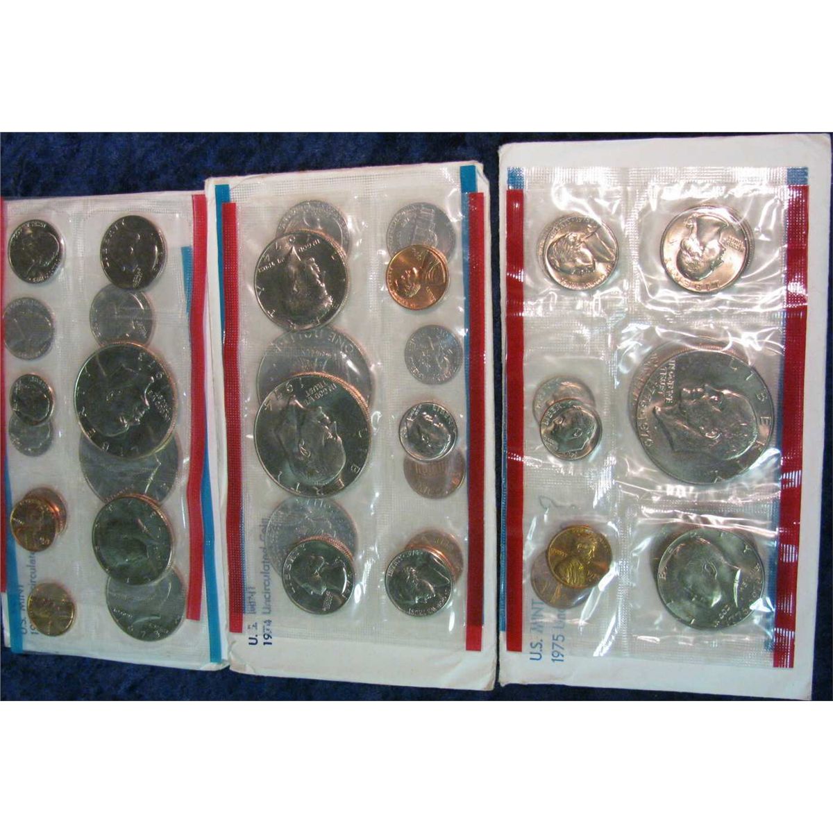 758. 1973, 74, & 75 U.S. Mint Sets. Original as issued.