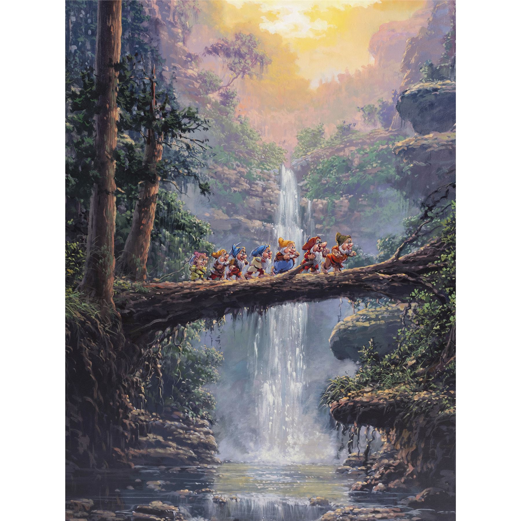 SNOW WHITE AND THE SEVEN DWARFS (1937) - Framed Hand-Painted Rodel Gonzalez "The Journey Home" Painting - A framed painting titled "The Journey Home" hand-painted by Disney Fine Artist Rodel Gonzalez based on Walt Disney's Snow White and the Seven Dwarfs. Best known as the lead singer of the rock band Side A, Gonzalez's original artwork featuring such classic Disney characters as the Seven Dwarfs, Bambi, Winnie the Pooh, and Aladdin appears in Disney theme parks around the globe.