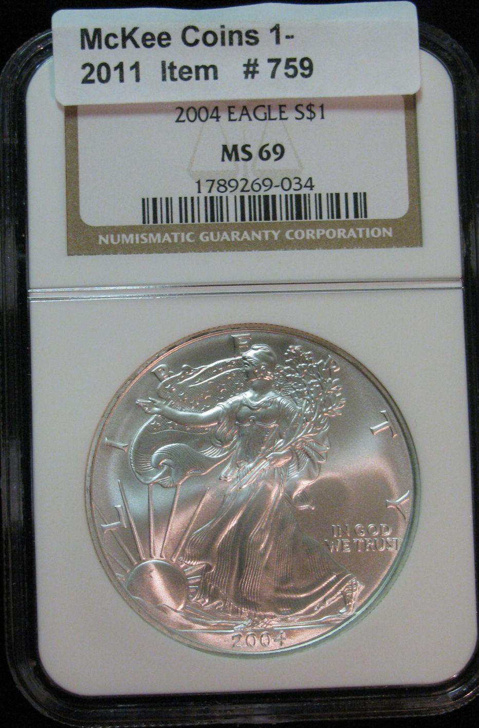 759. 2004 U.S. Silver Eagle Dollar NGC slabbed MS 69.