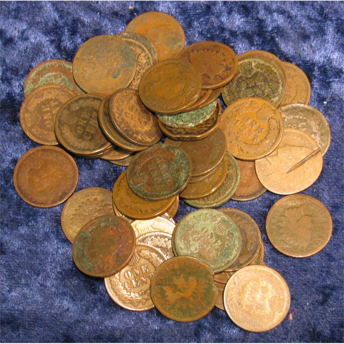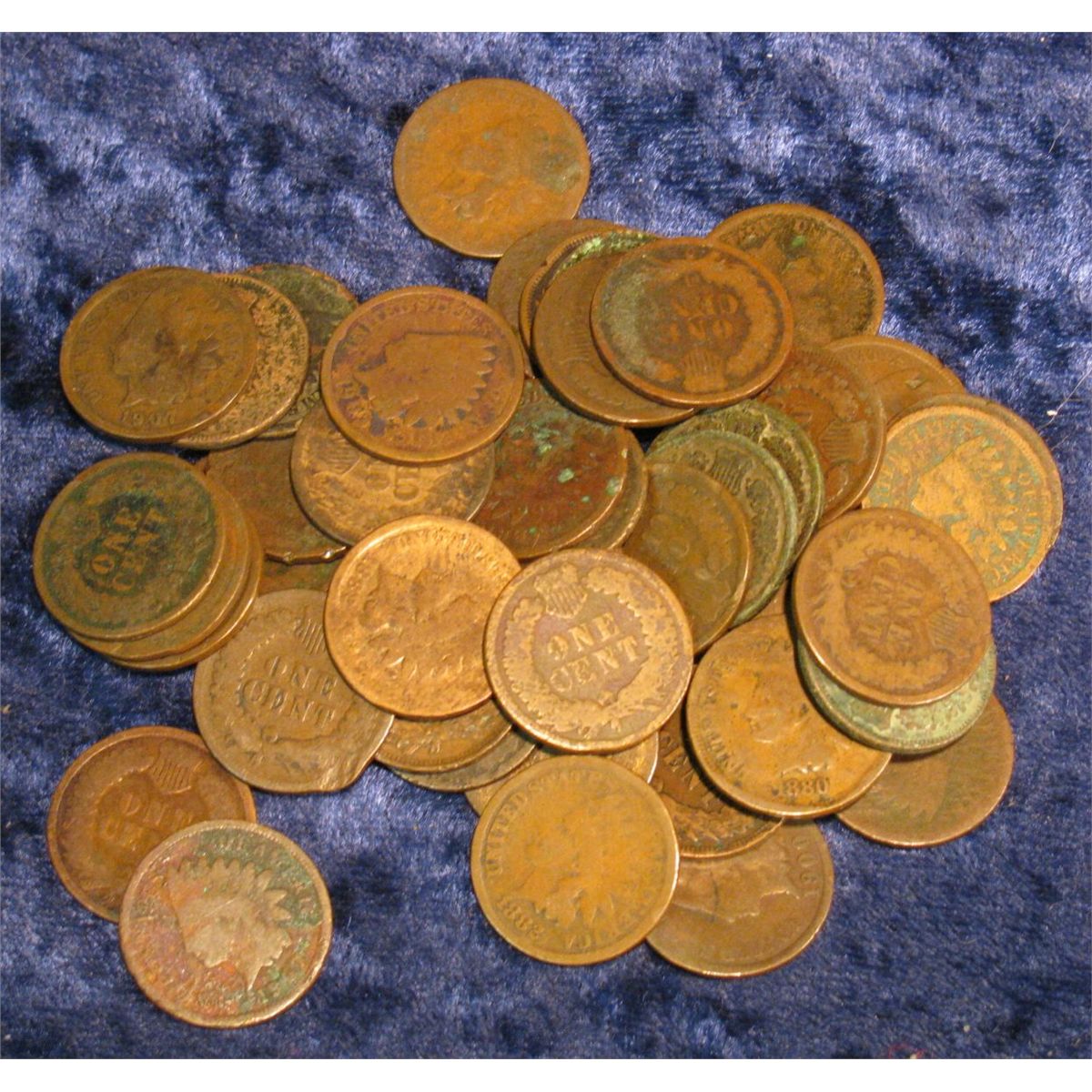 759. (50) Mixed Date cull Indian Head Cents. Dates range 1865-1907. Includes (3) 1865, (1) 1868, (2) 1874, (1) 1878, & (1) 1894.