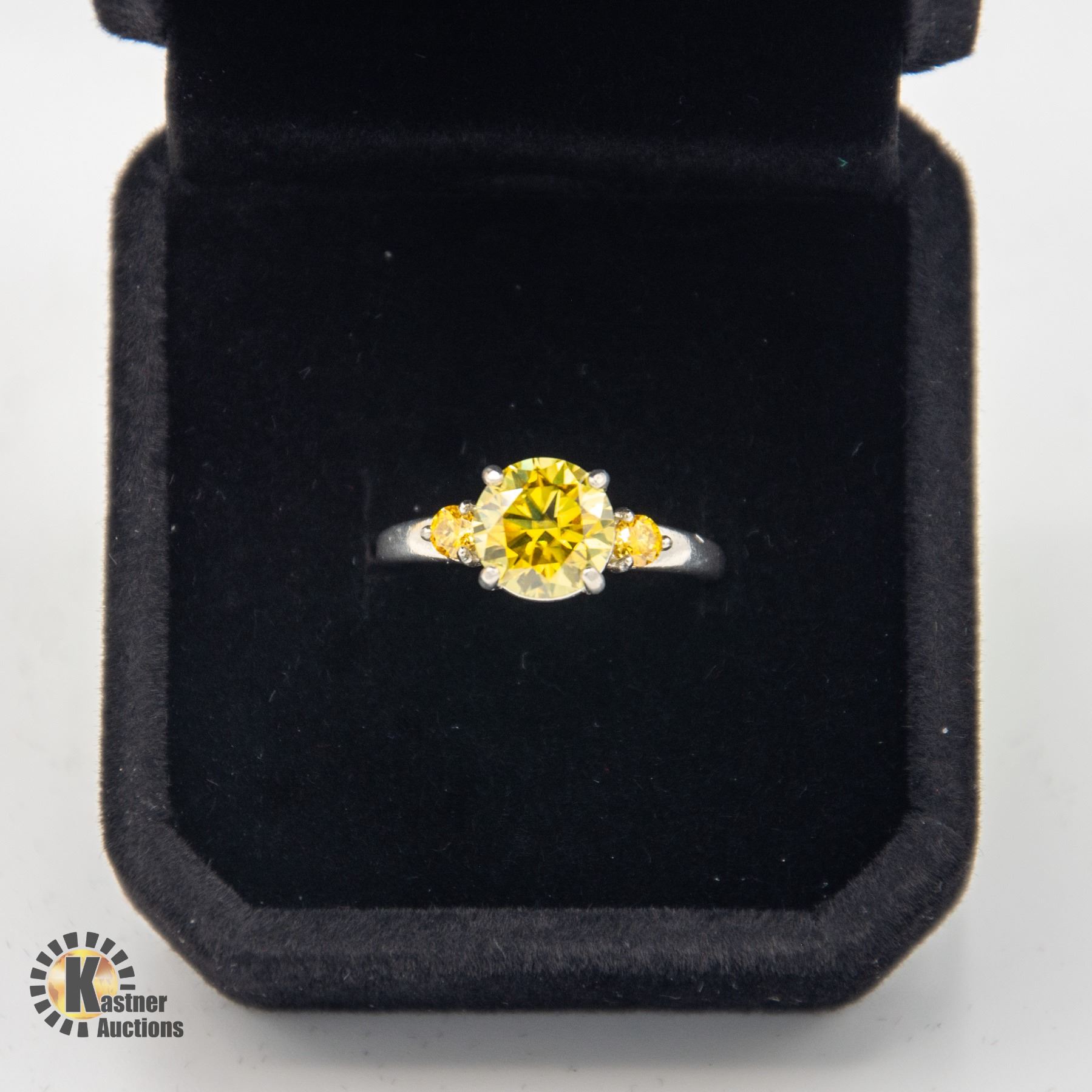 DIAMOND LAB CREATED WITH 2.00 CT GRA CERTIFIED ROUND BRILLIANT CUT MOISSANITE STONE VVS CHAMPAGNE COLOR SET IN CENTER IN 925 SILVER RING SIZE 7 **ALL ITEMS MUST BE REMOVED BY 5PM SATURDAY, OCTOBER 19TH 2024. ALL REMAINING ITEMS WILL BE SUBJECT TO A $6.00 PER DAY STORAGE CHARGE. ANY ITEMS REMAINING AFTER MONDAY, NOVEMBER 4TH 2024 WILL BE CONSIDERED FORFEITED. NO REFUNDS WILL BE ISSUED FOR FORFEITED ITEMS. TO SCHEDULE A PICK UP APPOINTMENT CLICK HERE