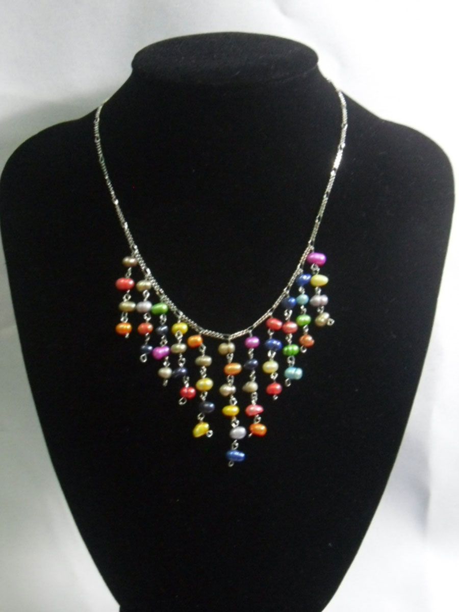 75CTW CHANDELIER MULTICOLOR RICE NECKLACE; AUTHENTIC PH **|**|** 75CTW CHANDELIER MULTICOLOR RICE NECKLACE; AUTHENTIC PHILIPPINE PEARLS,METAL-SILVER ; MSRP: $100
