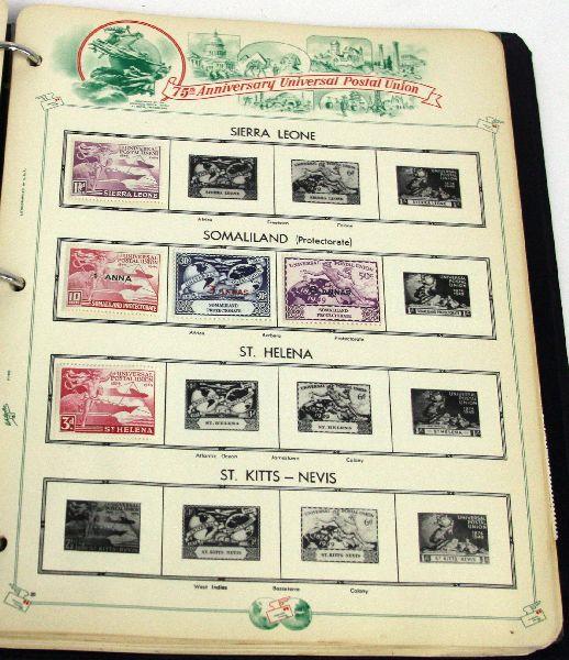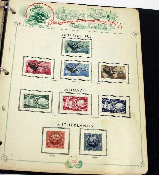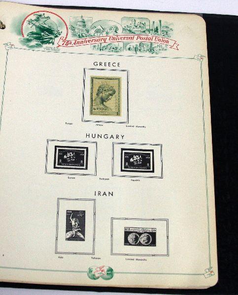 Two stamp books commemorating the 75th anniversary of the Universal Postal Union of 1949. One with the word Israel on the cover containing 46 full pages of unhinged and unused stamps. Second smaller book contains 79 pages with 4 unused and unhinged stamps