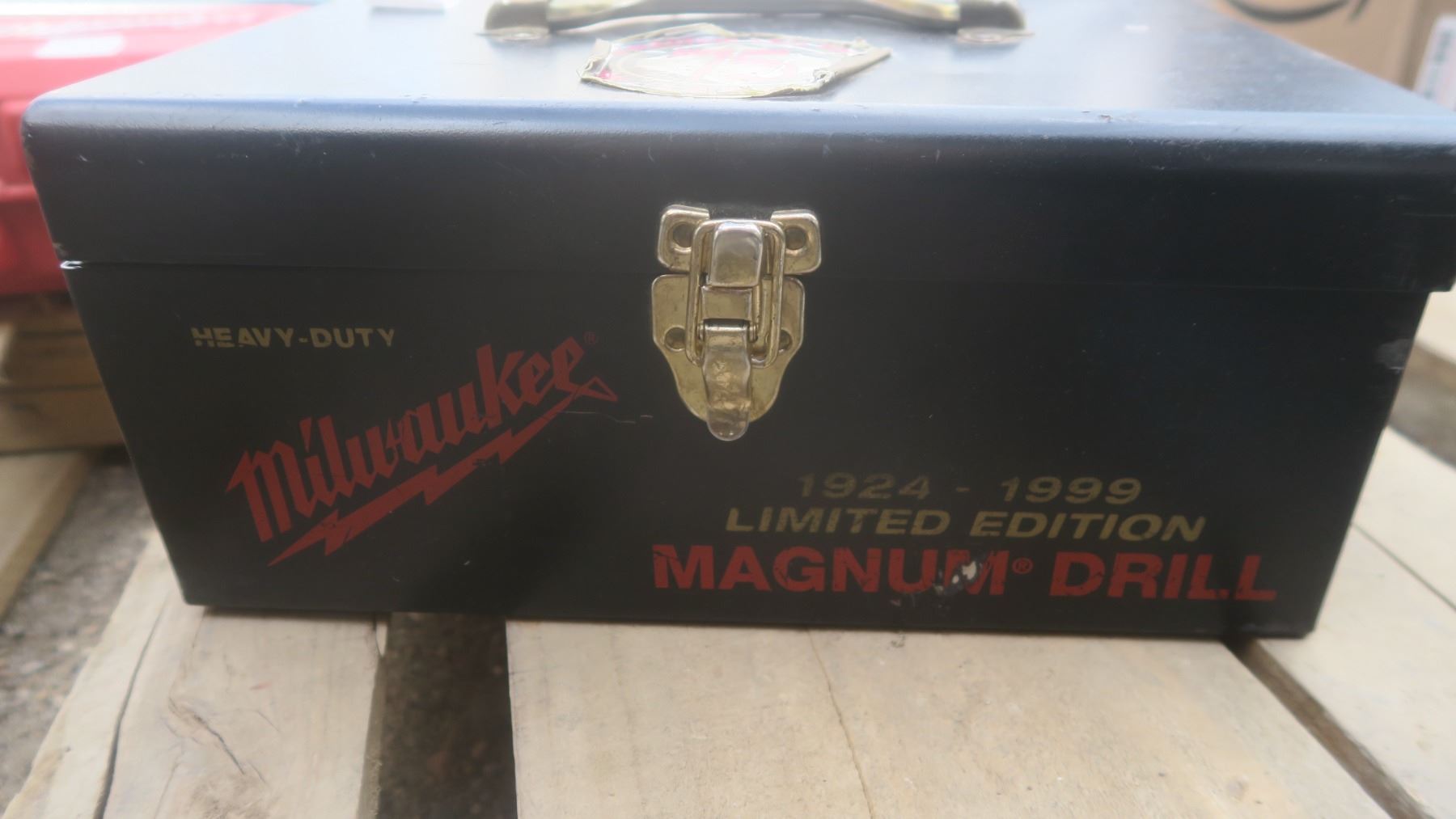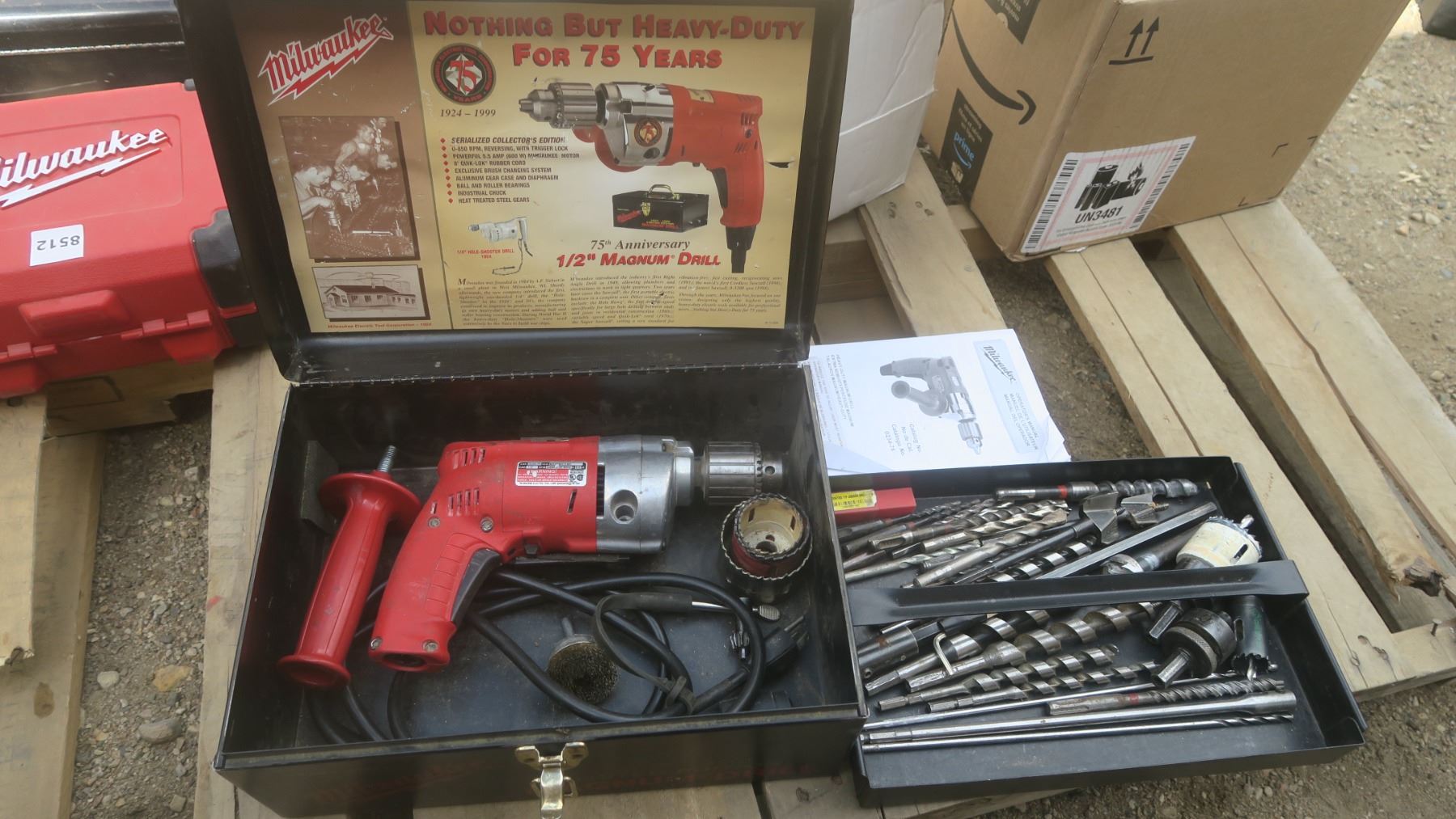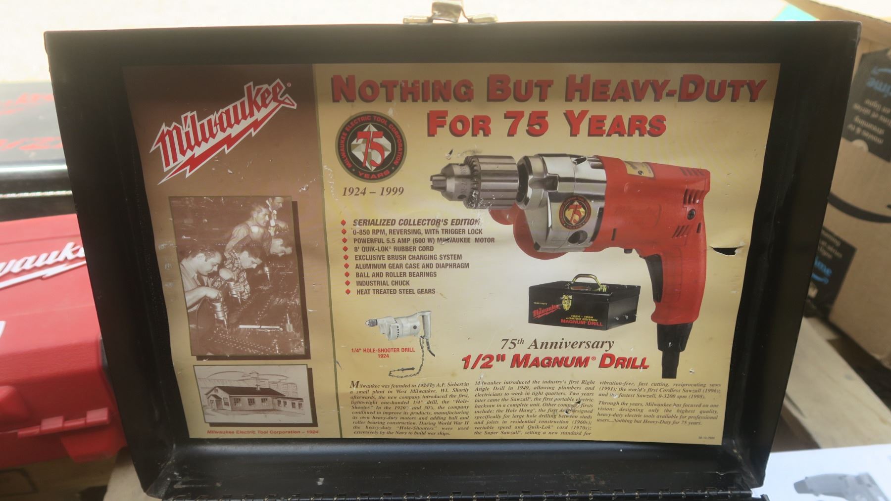 75th Anniversary Milwaukee 1/2" Magnum Drill with assorted bits in case