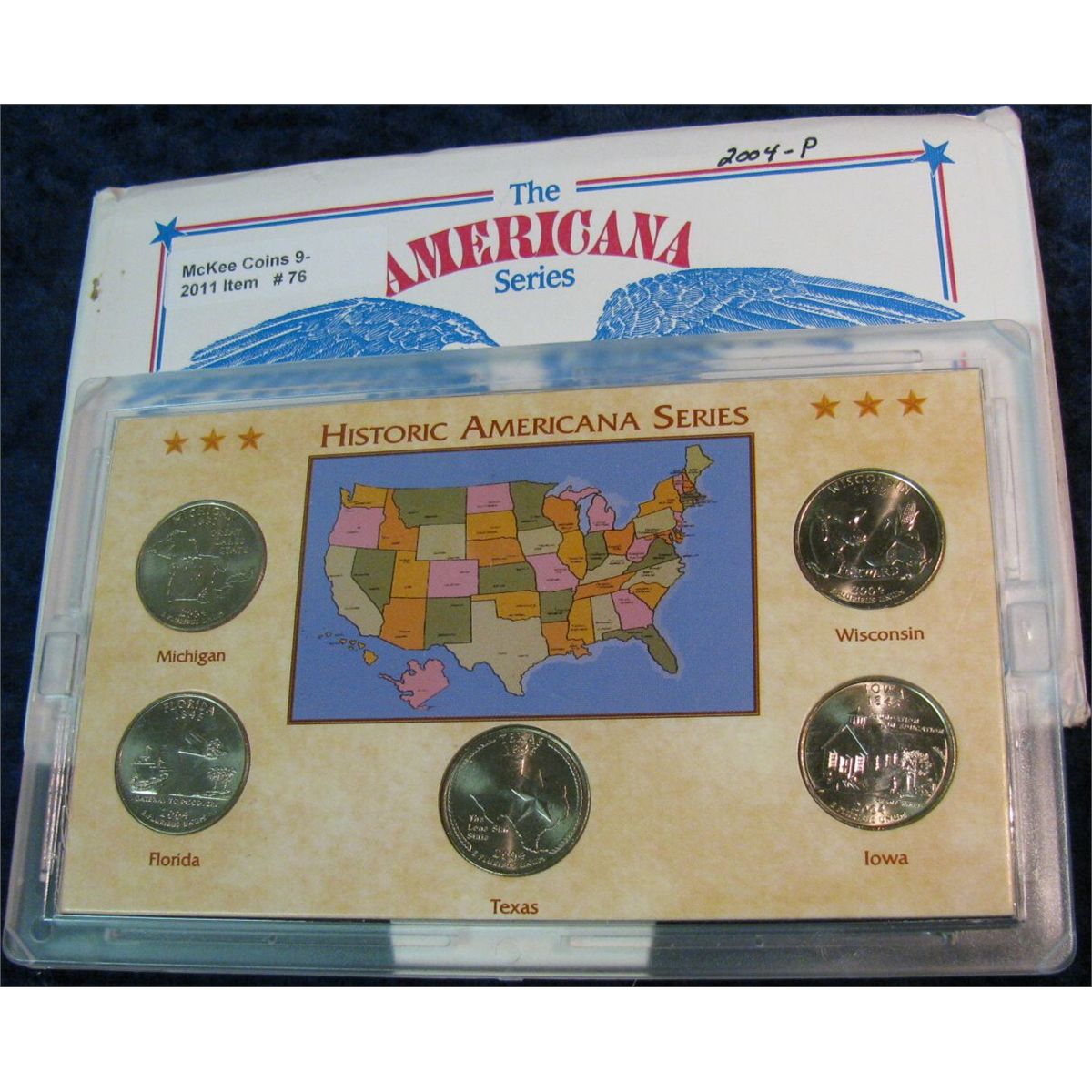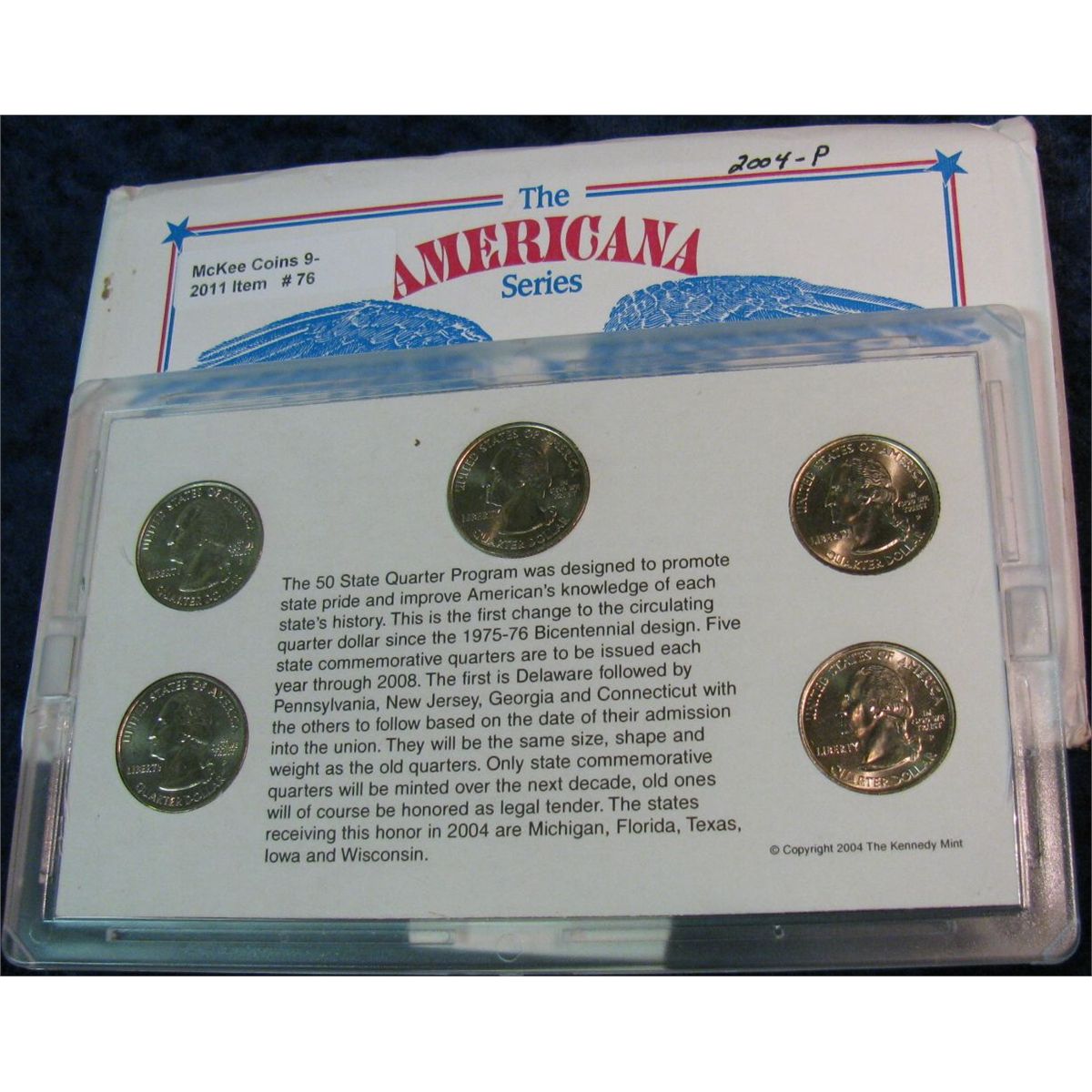 76. 2004 P Statehood Quarter Collection in hard plastic Kennedy Mint case. BU. Five-piece.