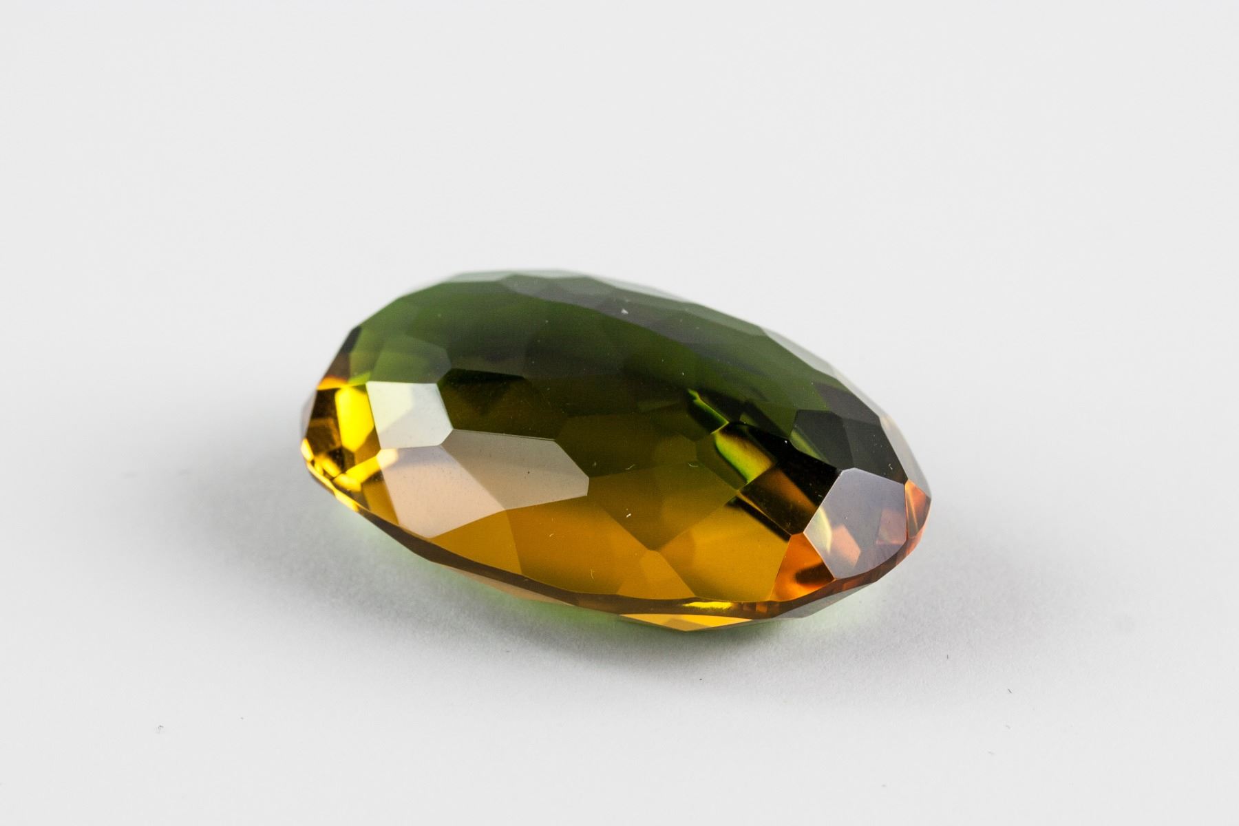 Dual colour alexandrite; oval cut; 76.50ct; Brazilian loose gemstone B-5814; 34 mm x 23 mm x 12 mm
