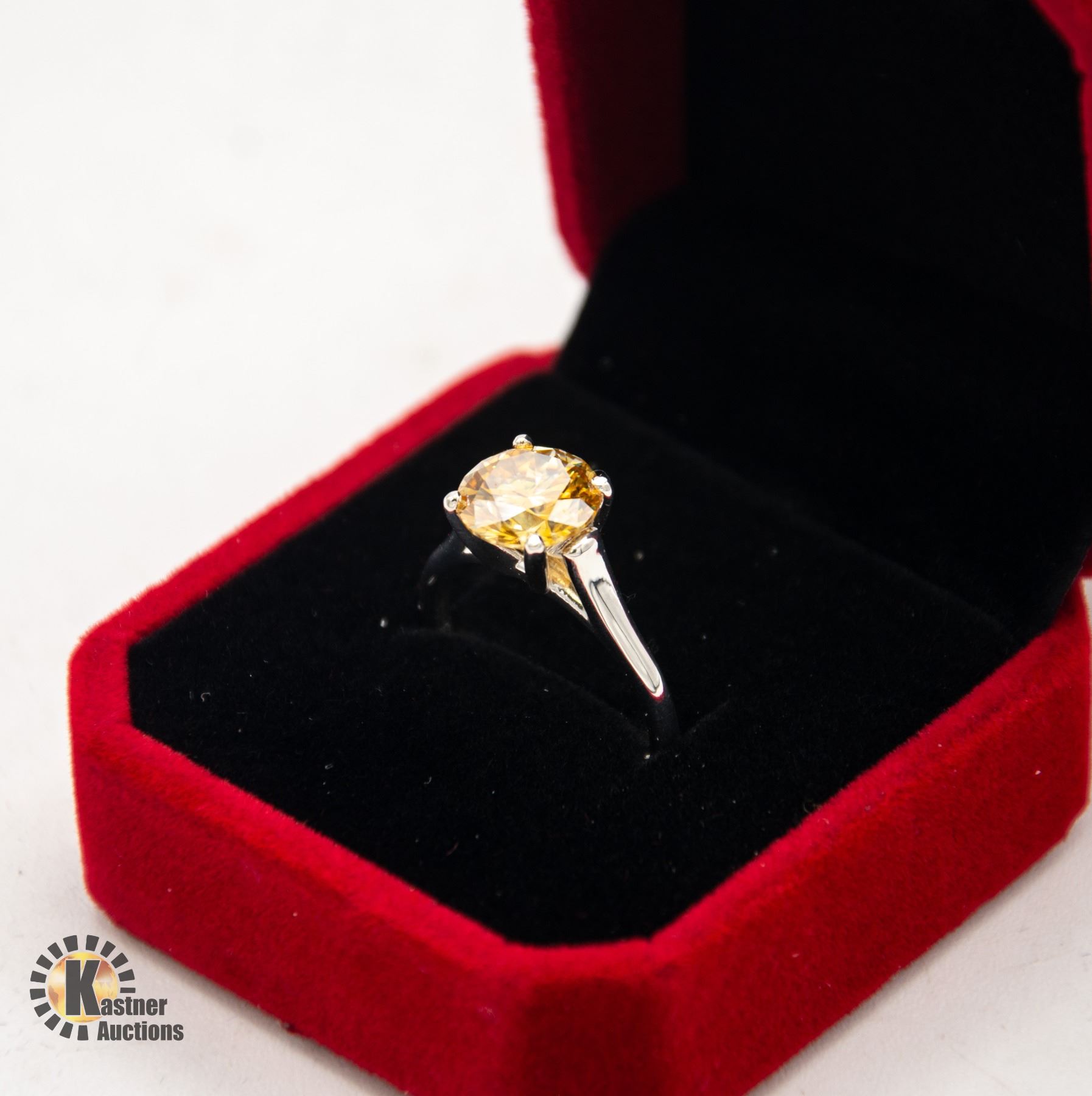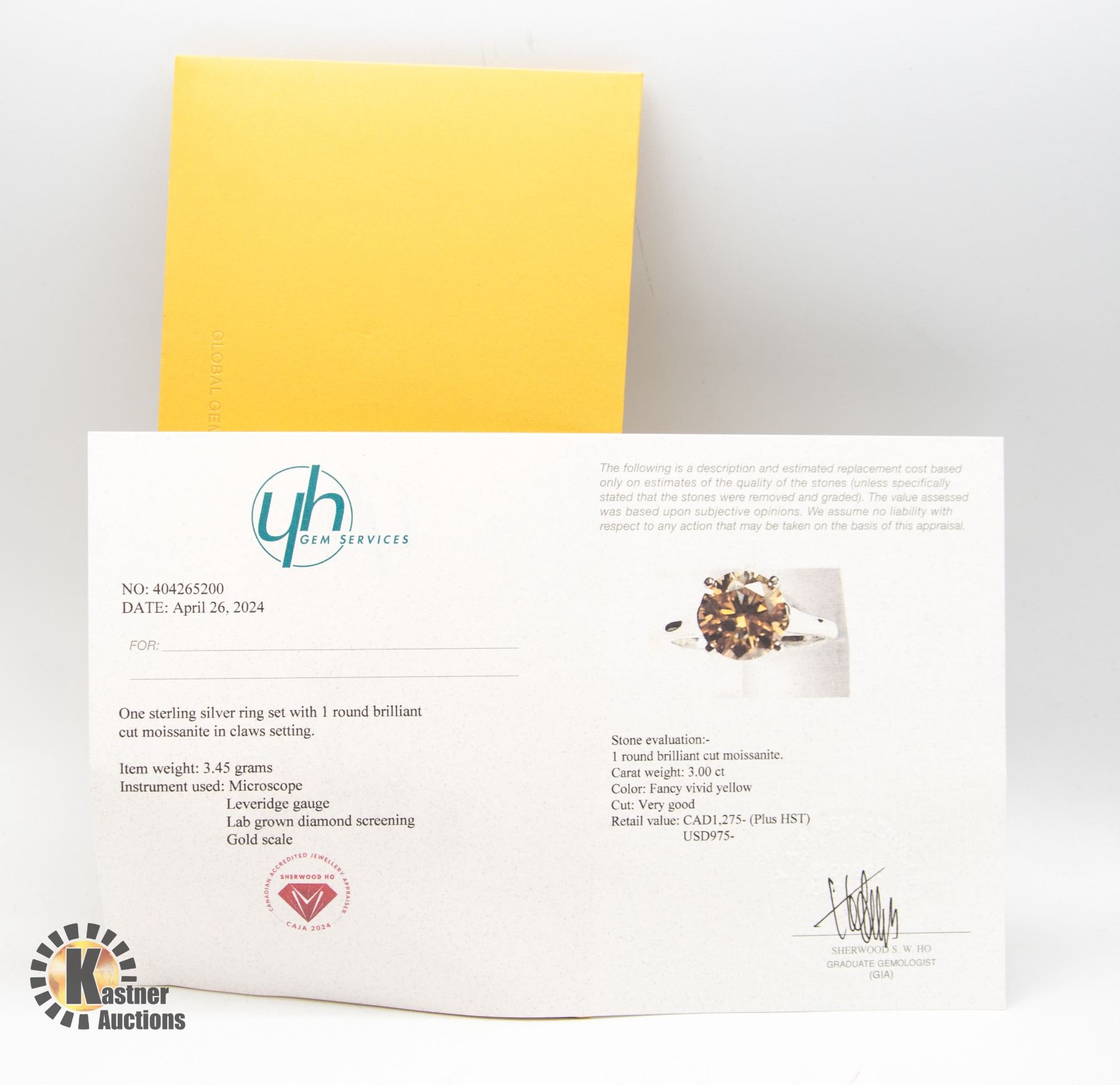 CUT MOISSANITE VVS FANCY VIVID YELLOW COLOR SET IN 925 SILVER RING SIZE 7.75 RETAIL VALUE $1,275.00