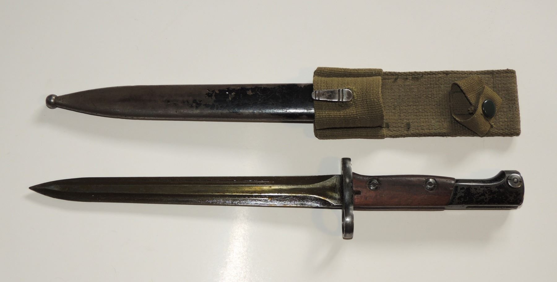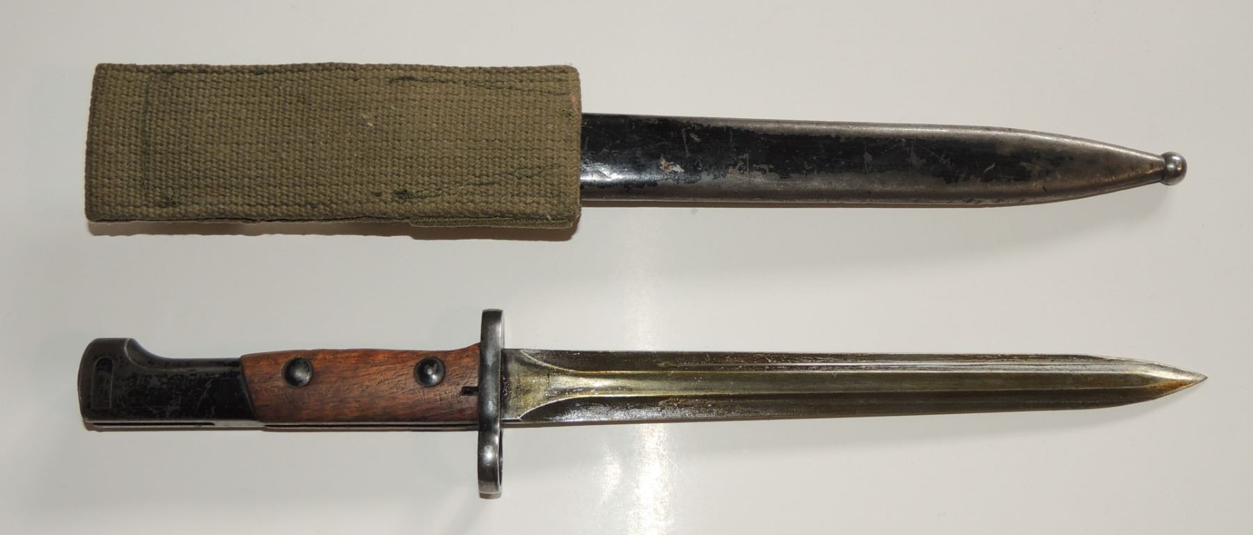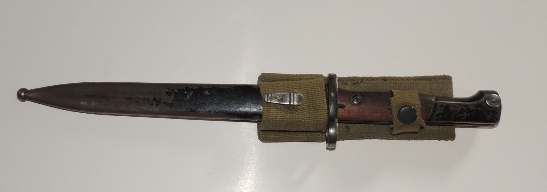 15 INCH BAYONET W/ SCABBARD + FROG EGYPTIAN NORTH AFRICAN BAYONET COLD WAR ERA FOR BELGIAN AUTOLOADING BATTLE RIFLE MILITARY FORCES