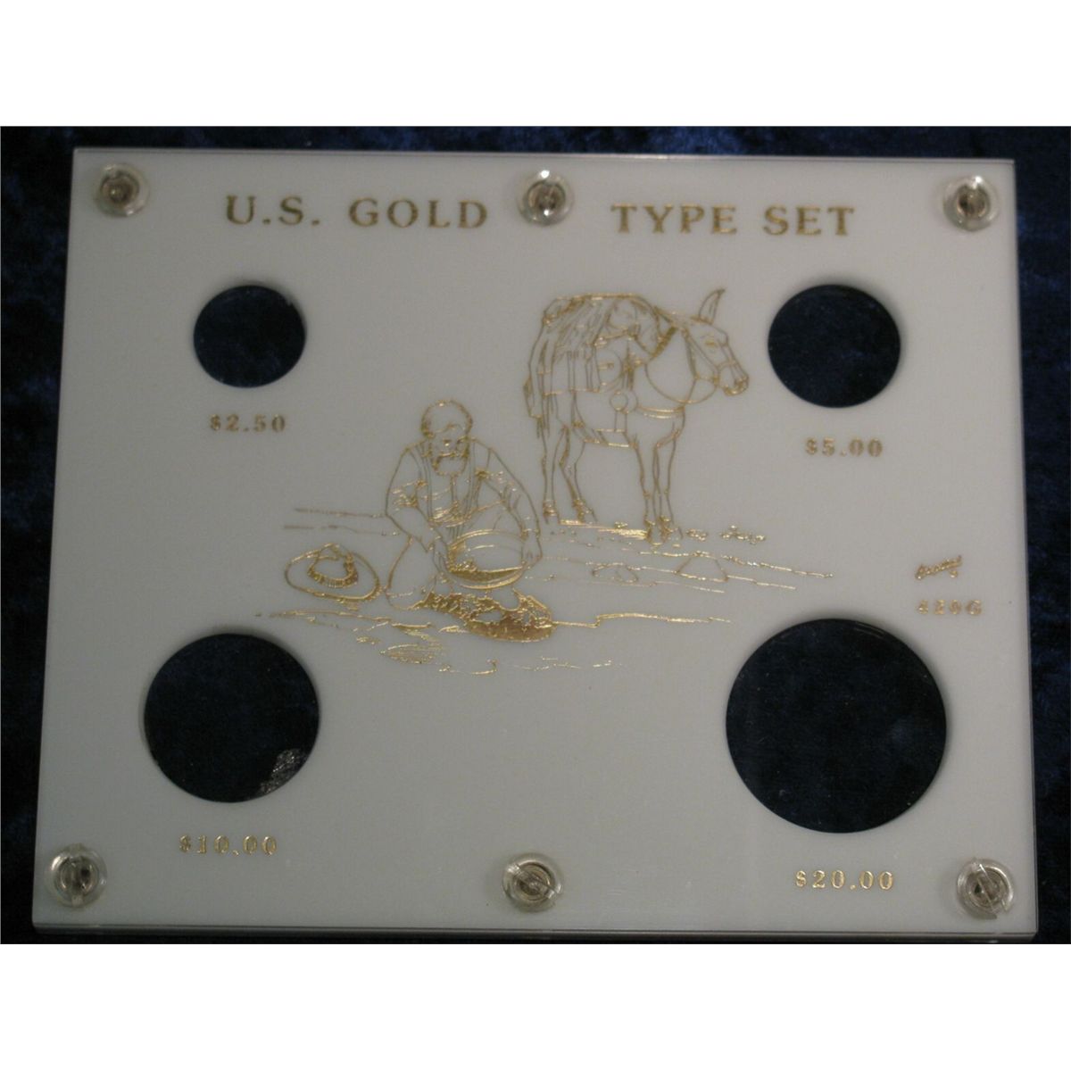 760. Capital Plastics Holder- U.S. Gold Type Set. (Four-coin set, Capital # 420G). White insert with gold lettering.