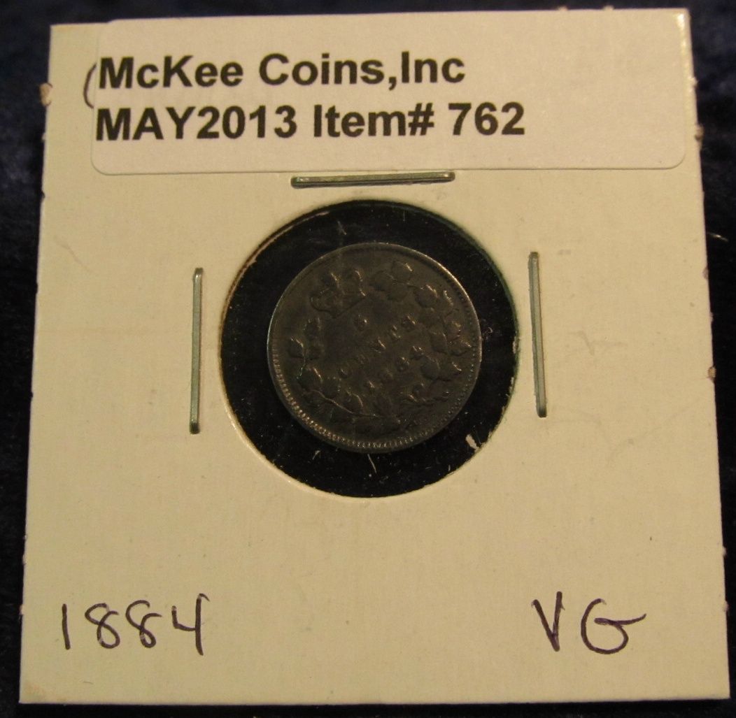 762. 1884 Keydate Canada Five Cent Silver. VG-8.