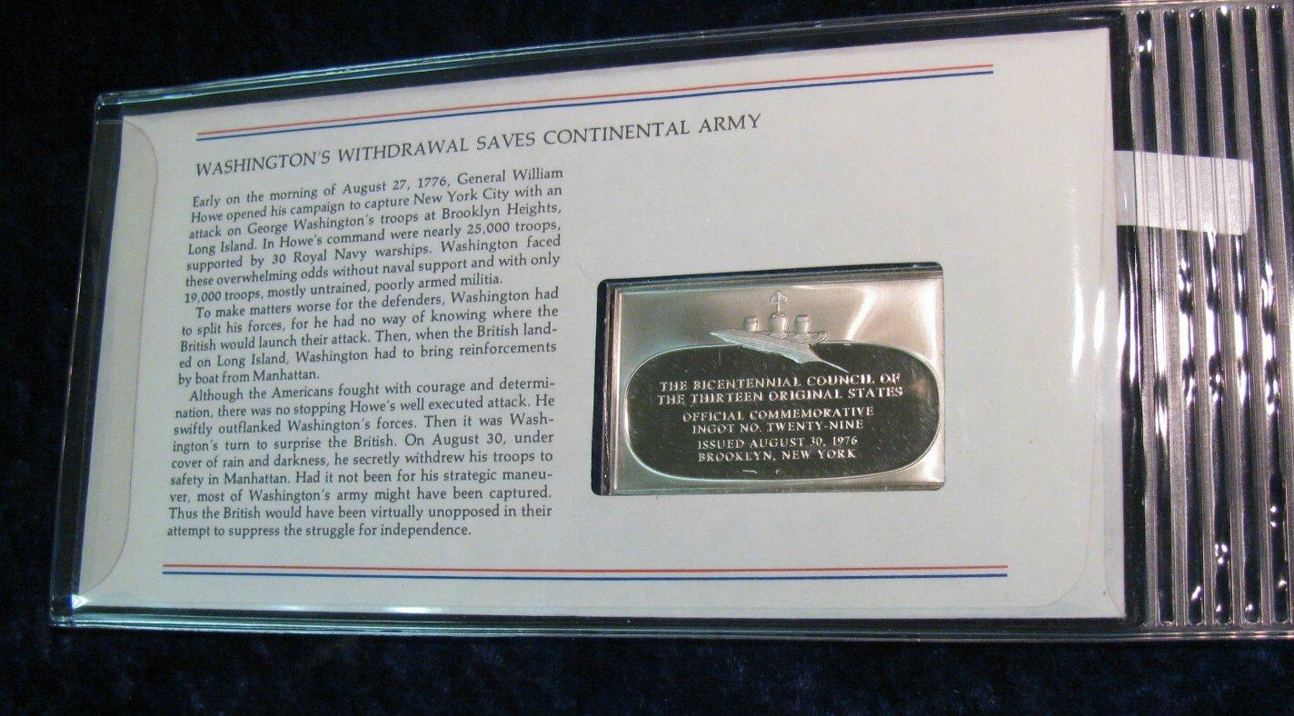 762. Sterling Silver Limited Edition Proof No. 29 Ingot. The Bicentennial Council of the Thirteen Original States.