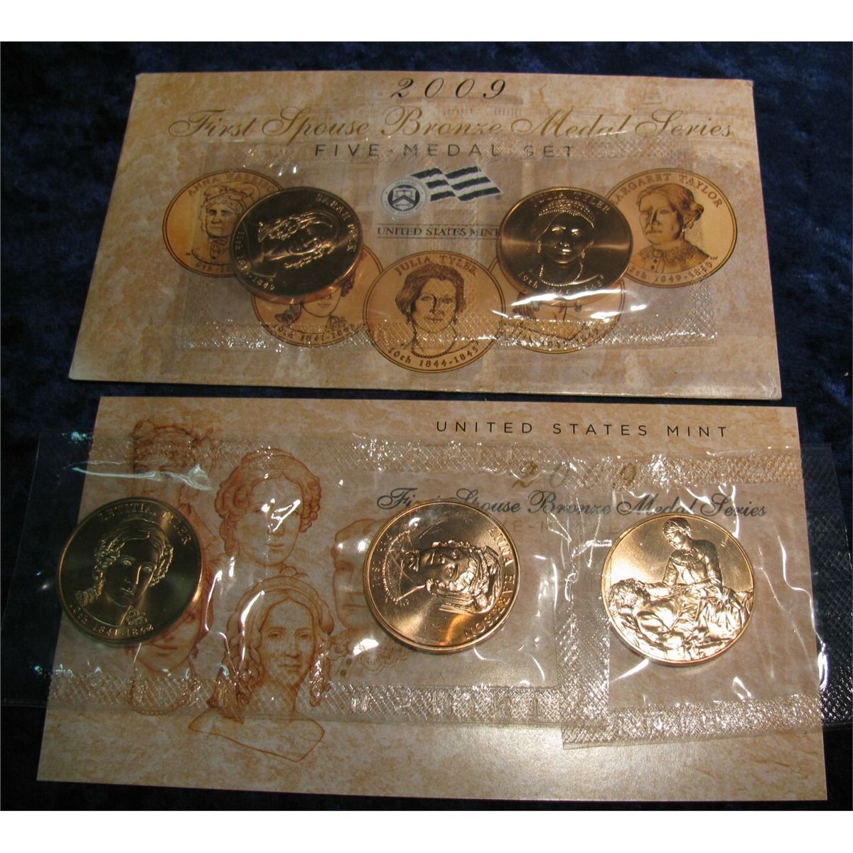 763. 2009 First Spouse Bronze Medal Series Five-Medal Set. In original envelope as issued.