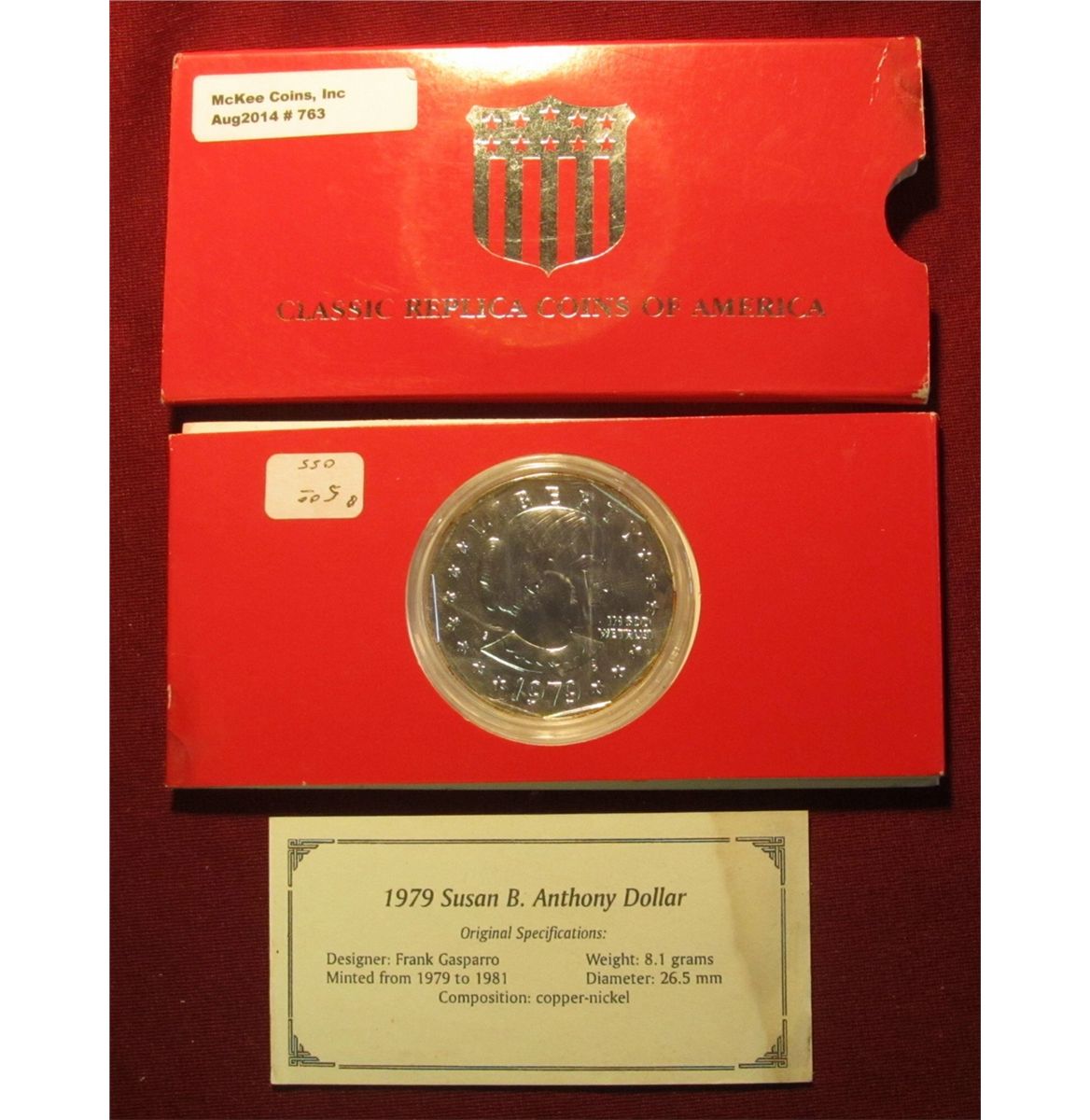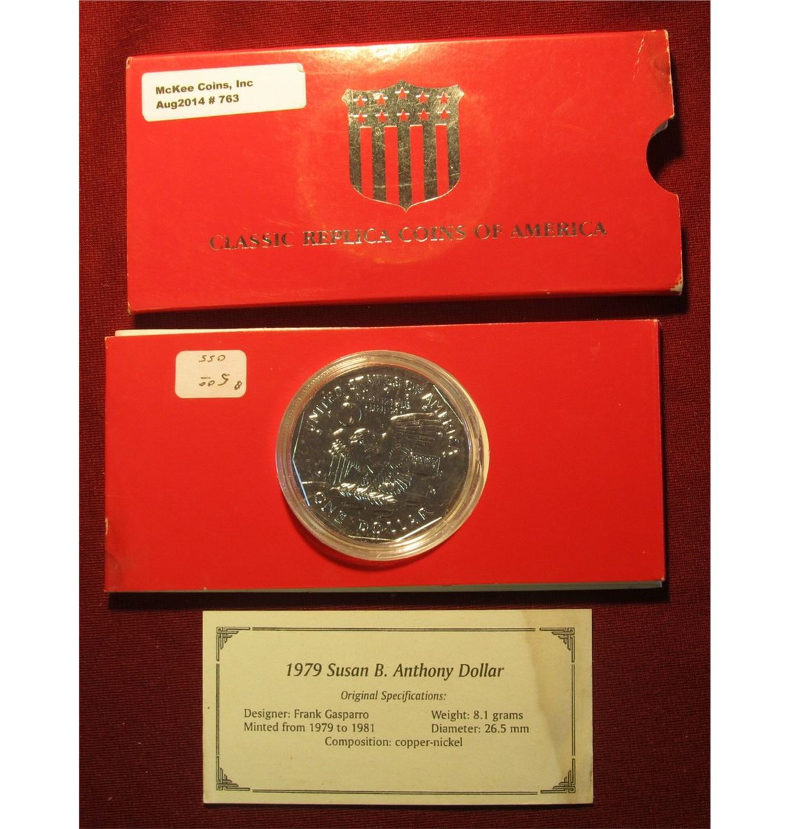 763. Large size 1979 S Susan B. Anthony Dollar Copy in holder, plated in .999 Fine Silver.