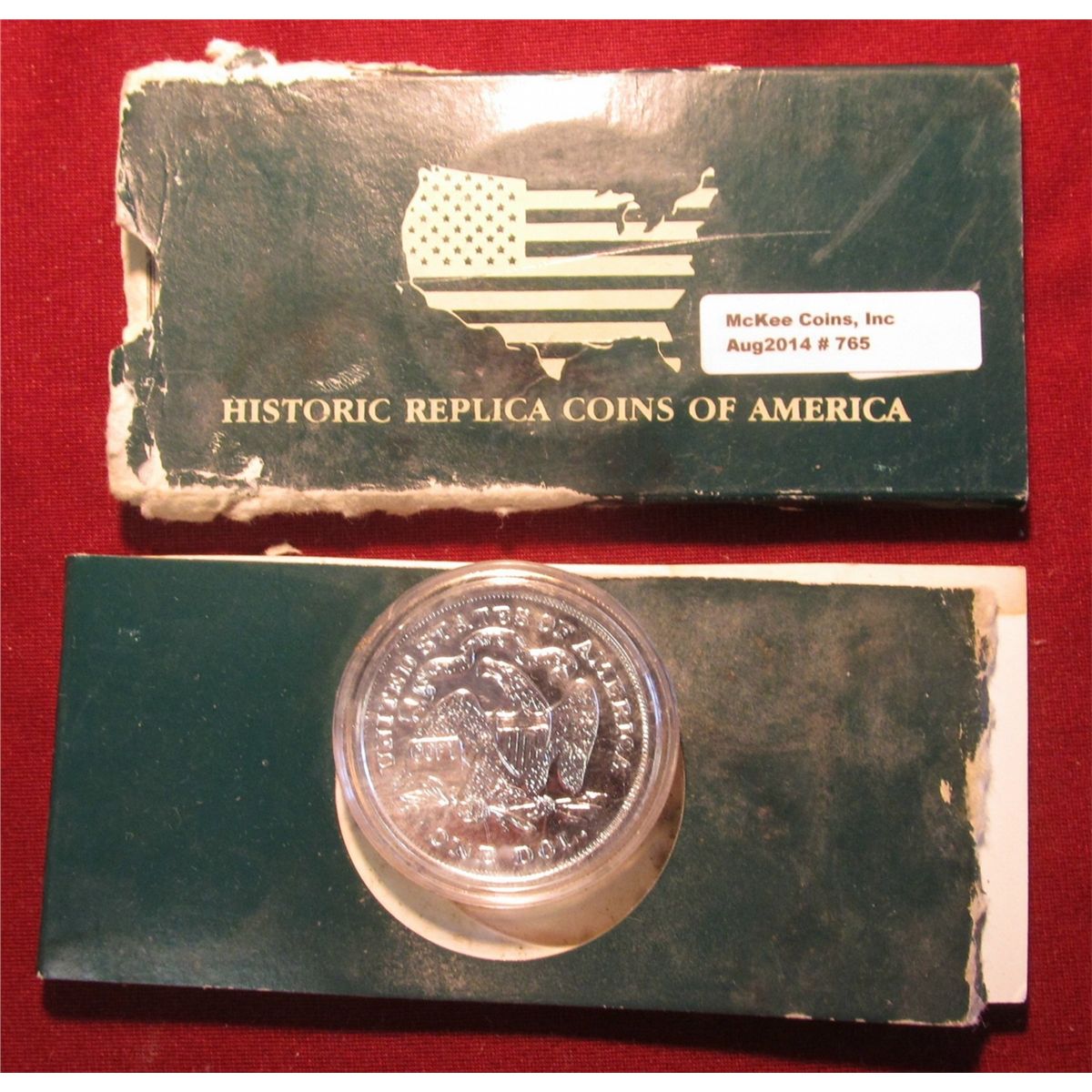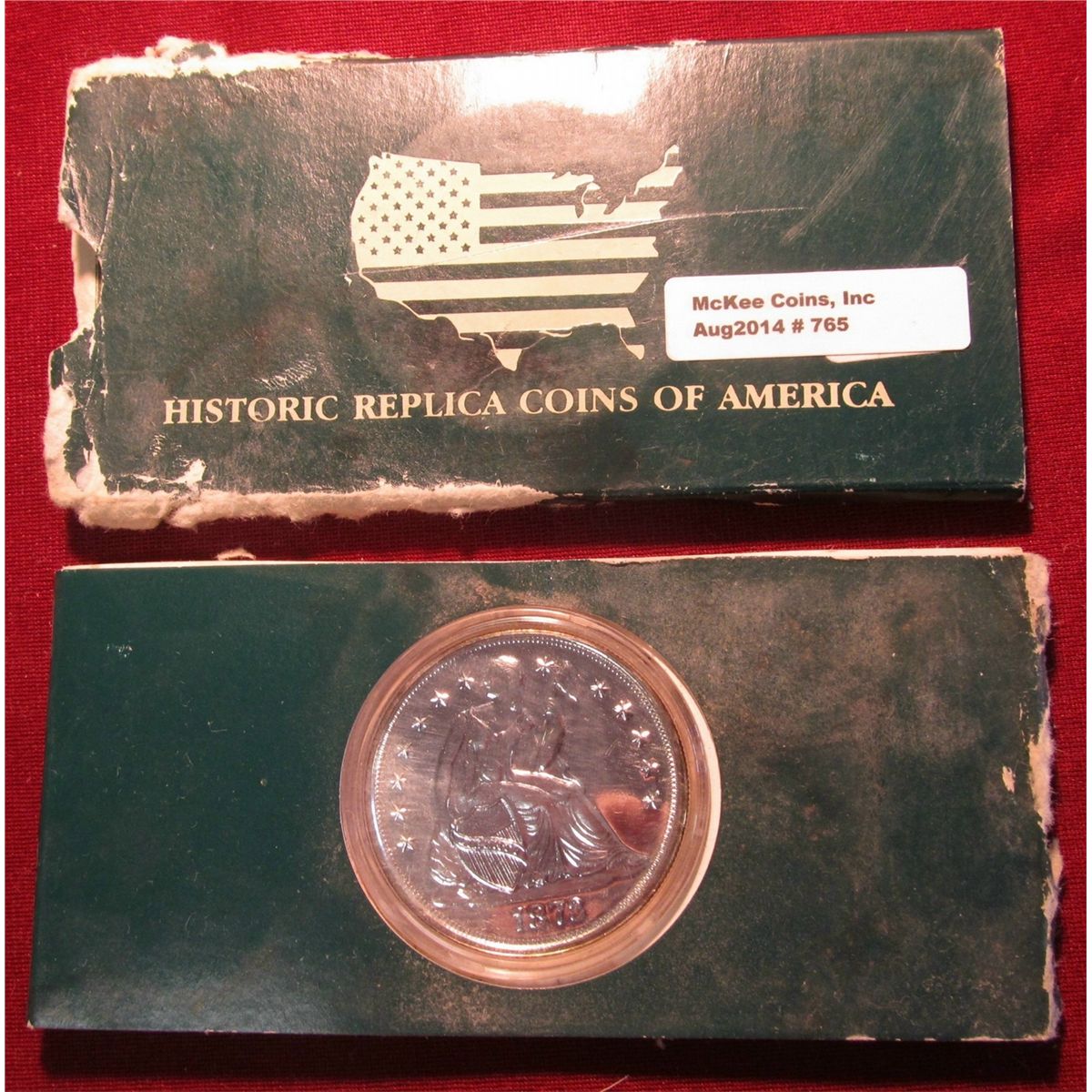 765. Large 1873 S U.S. Seated Liberty Dollar Copy in holder, plated in .999 Fine Silver.