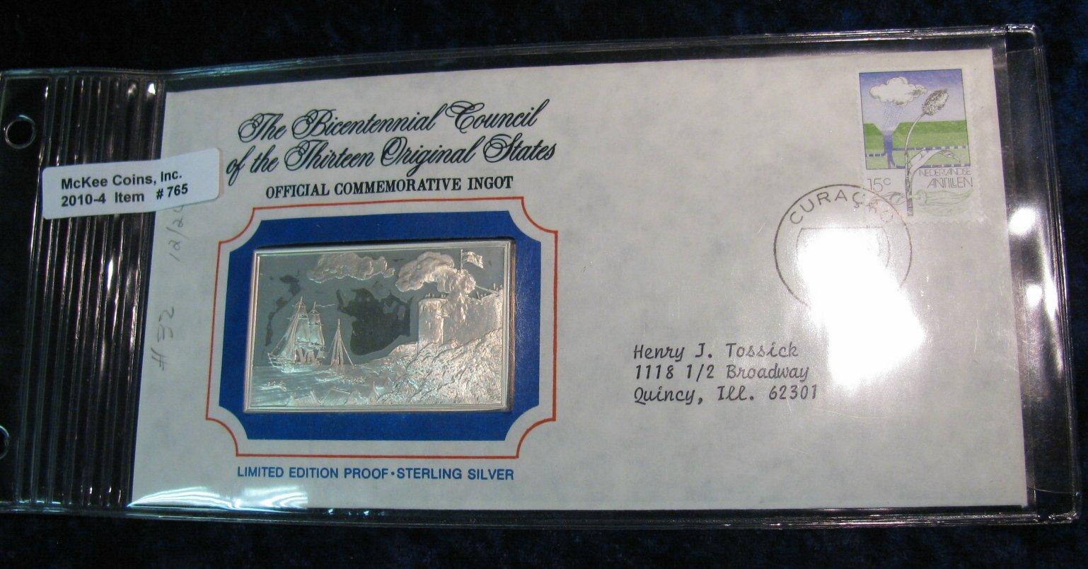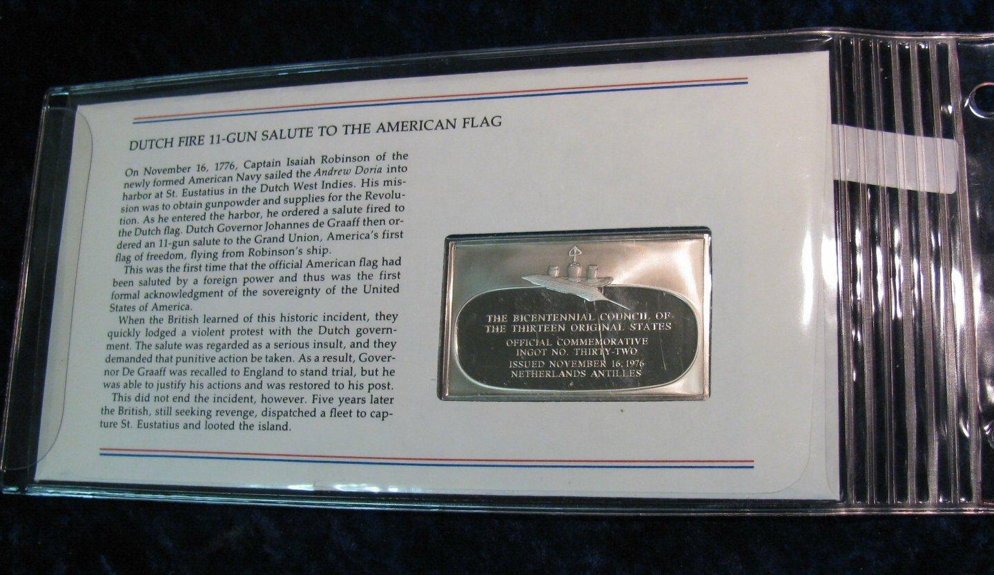 765. Sterling Silver Limited Edition Proof No. 32 Ingot. The Bicentennial Council of the Thirteen Original States.