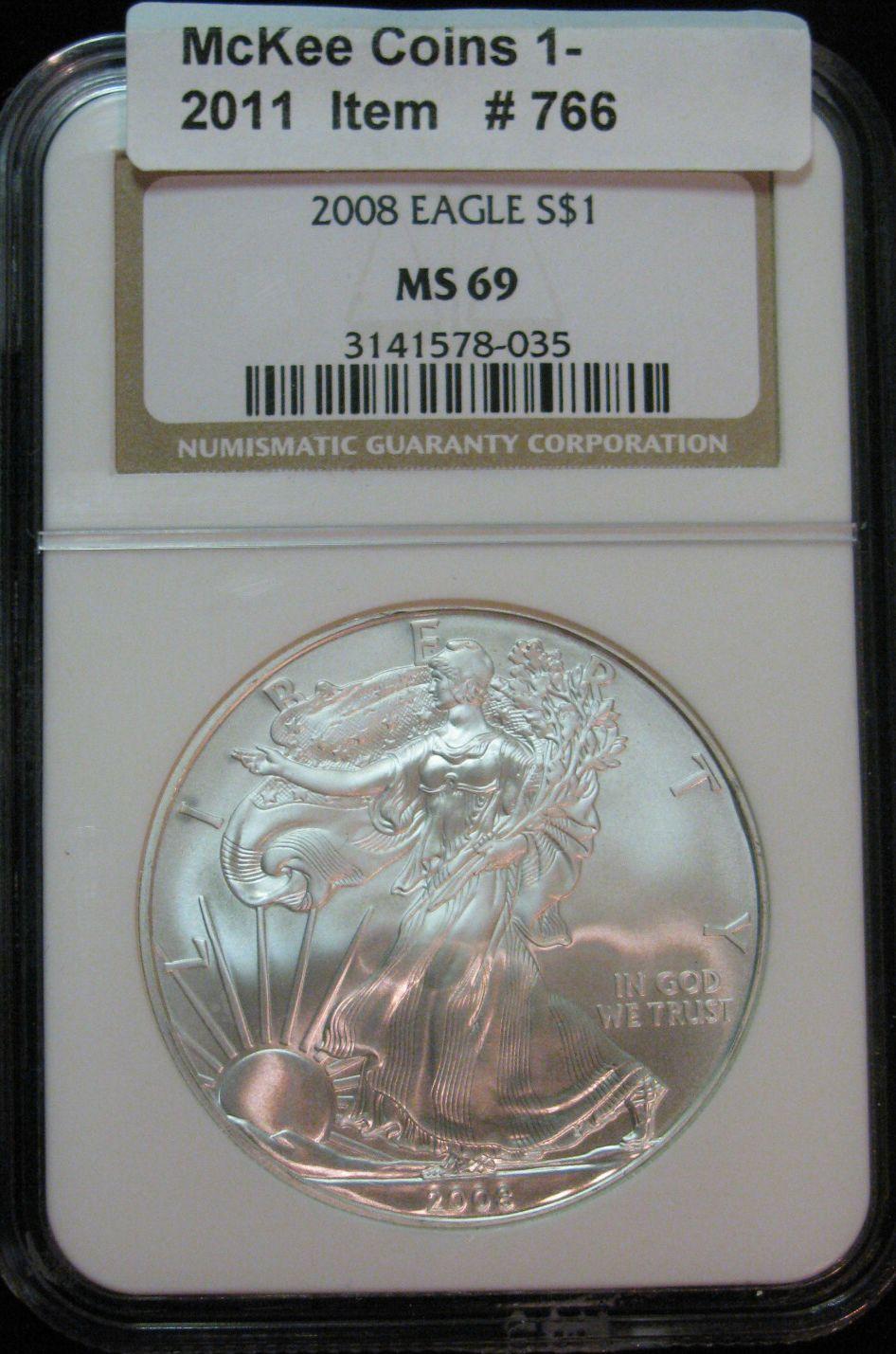 766. 2008 U.S. Silver Eagle Dollar NGC slabbed MS 69.