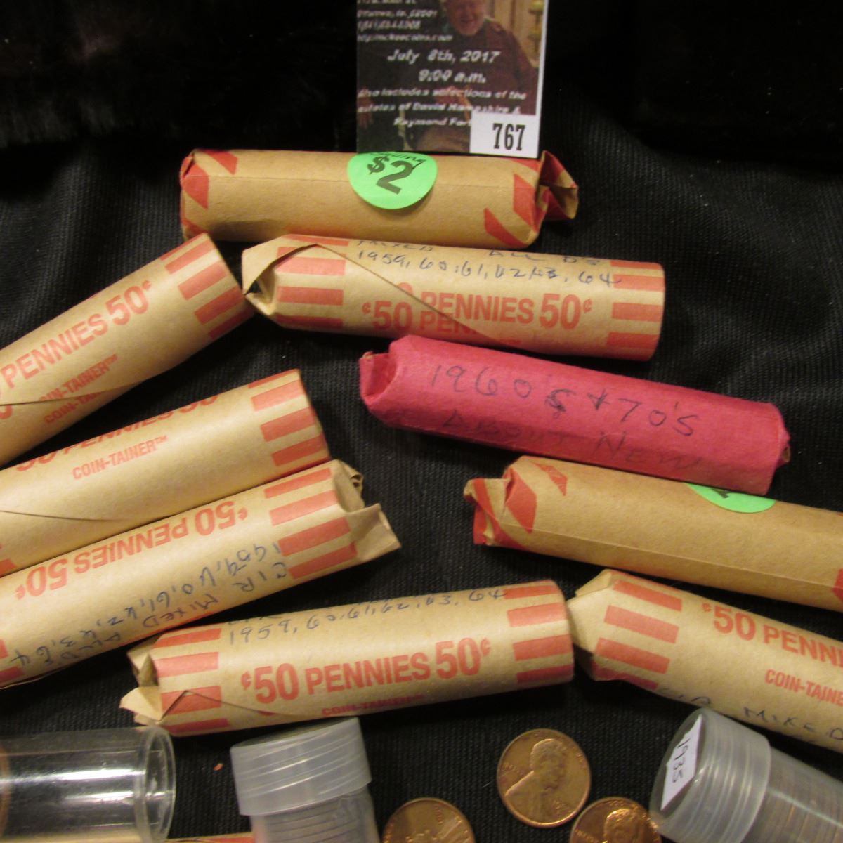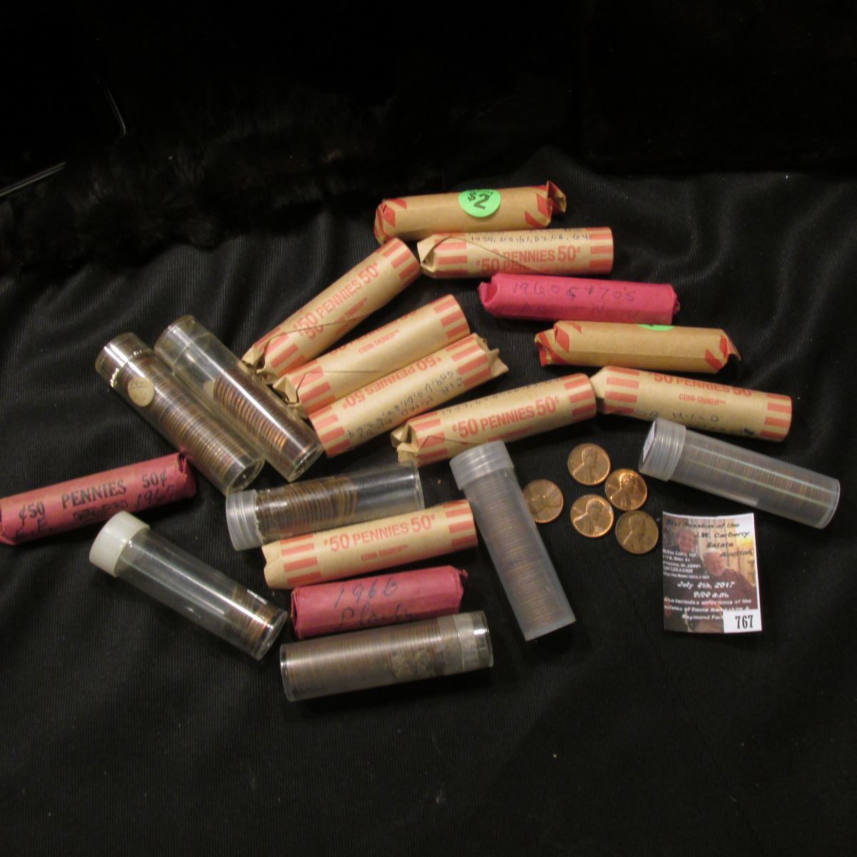 767.More than (16) Rolls of Unsorted U.S. Lincoln Cents, includes some BU 1954 S Cents, part tubes, and etc.