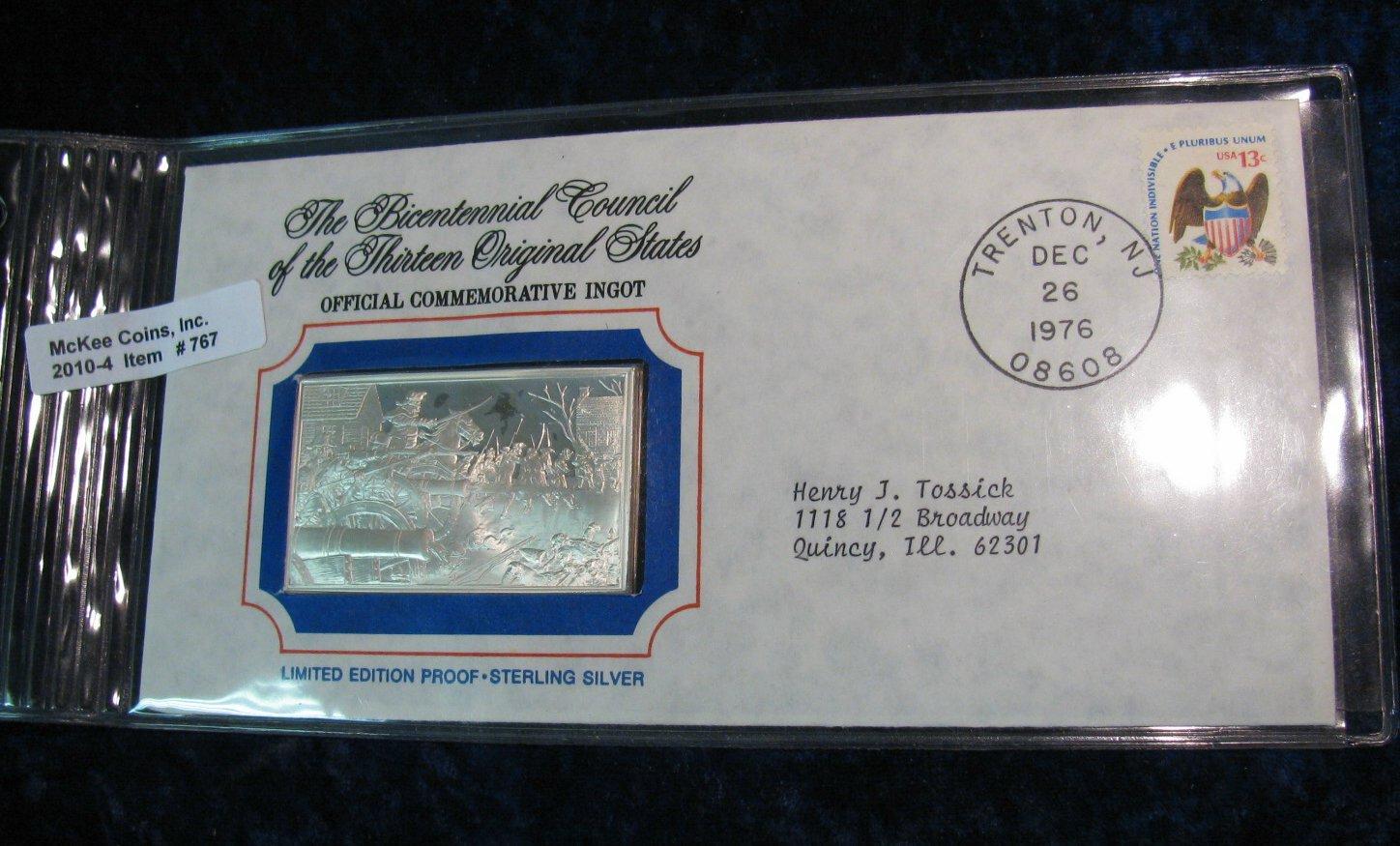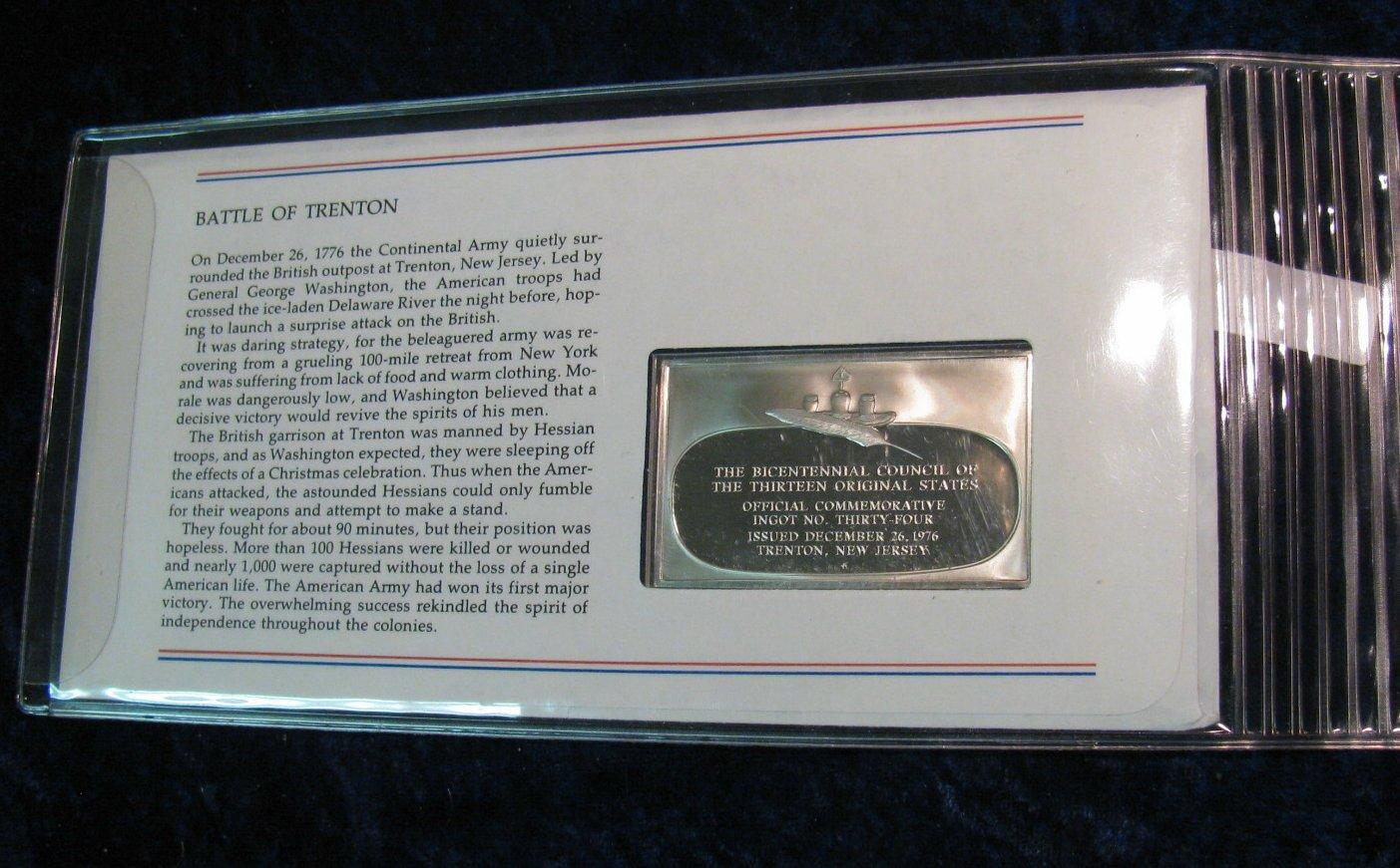 767. Sterling Silver Limited Edition Proof No. 34 Ingot. The Bicentennial Council of the Thirteen Original States.