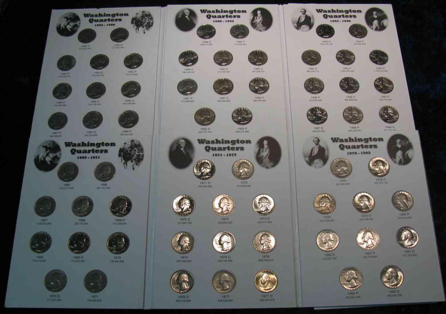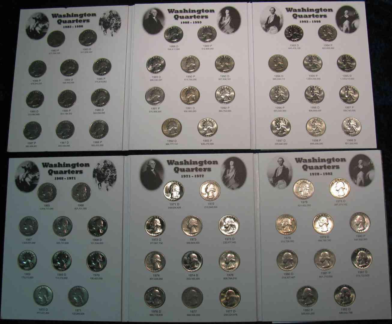 768. Complete Quarter Sets 1965-88 in two Marcus folders. (63 coins).