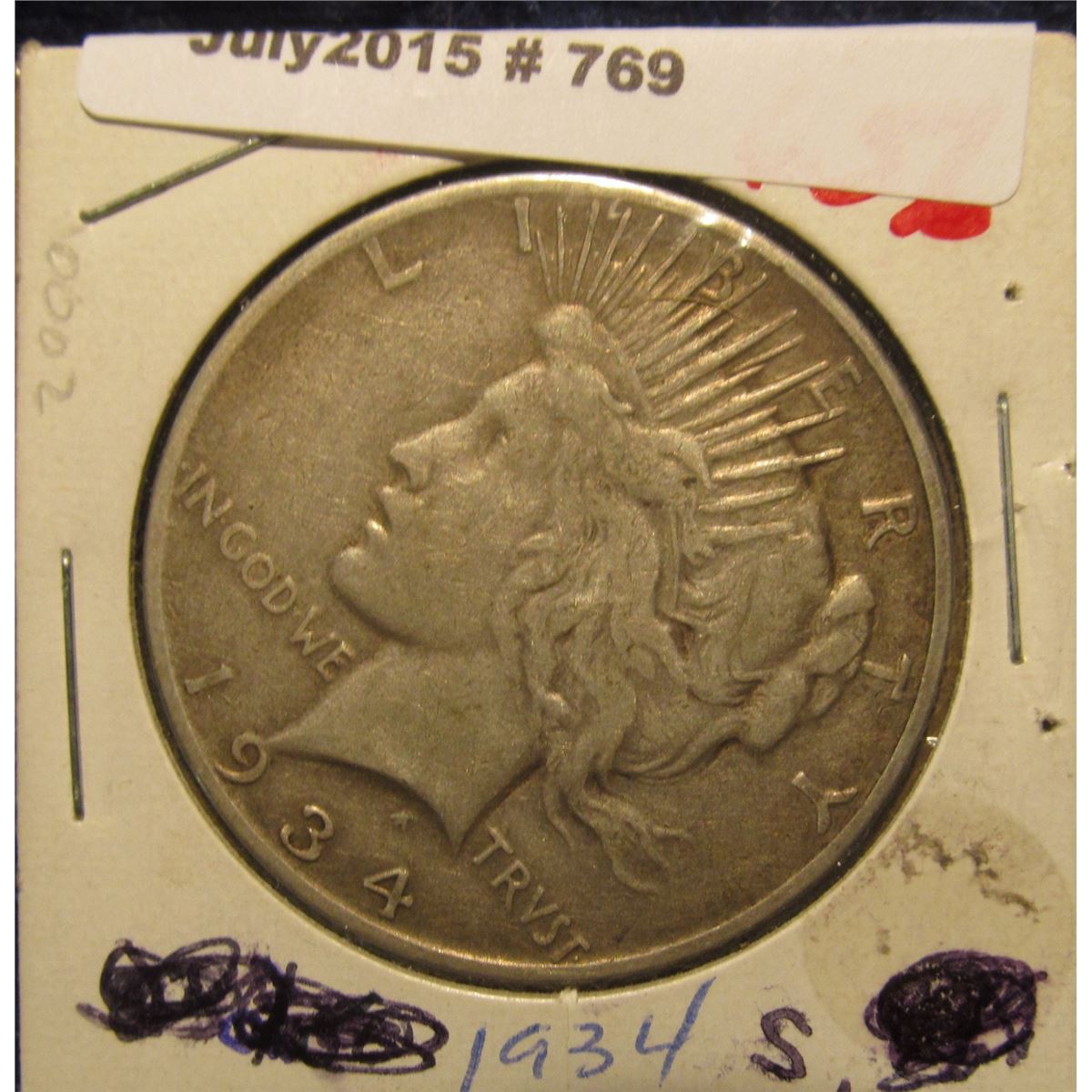769. 1934 S U.S. Peace Silver Dollar. VF 20. Scarce Key date.
