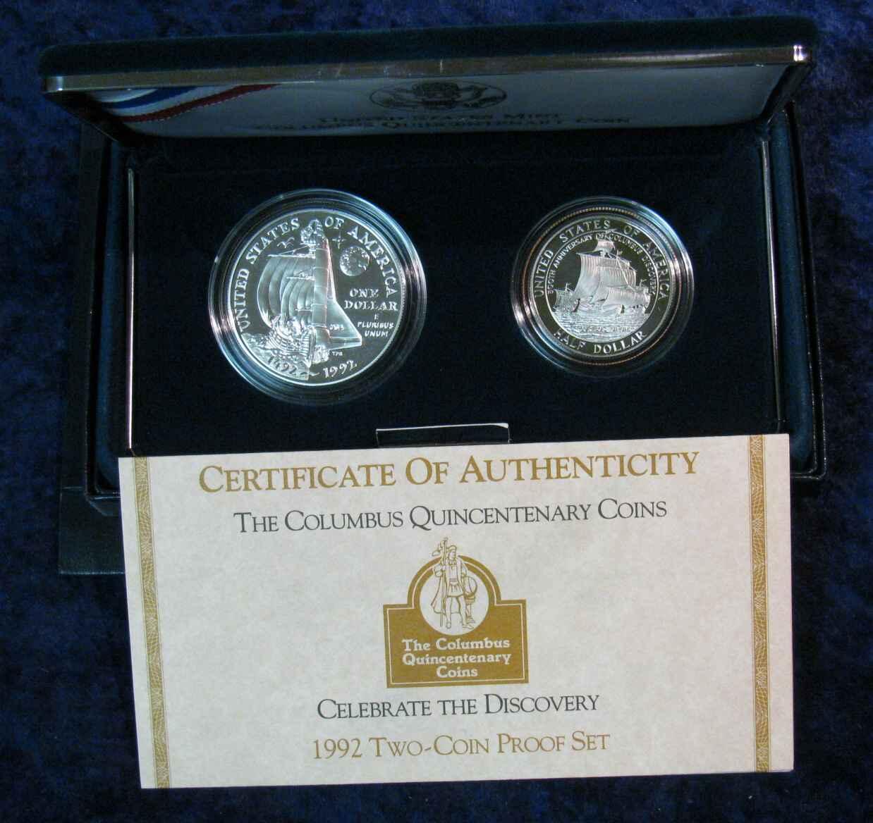 769. 1992 P Columbus Quincentenary Two-Coin Silver Proof Set. Original as issued with Certificate of Authenticity.