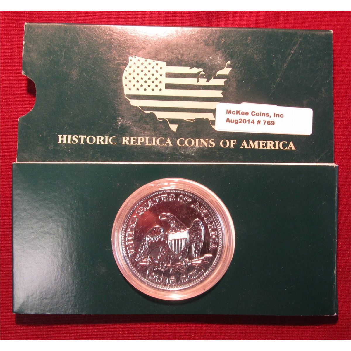 769. Large 1866 No Arrows U.S. Seated Liberty Quarter Copy in holder, plated in .999 Fine Silver.