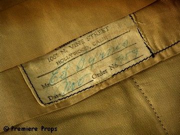 Starting in 1958, the TV world was awash with the mega-hit "77 Sunset Strip". And the break-out heartthrob was Edd Byrnes as "Kookie". He became a super star (including a hit song about how he combed his hair!). This is a rare item indeed. Hero screen used dark gray slacks with Edd Byrnes name on label inside; Small tear on the lower part of the right front pocket; Also written inside waist is "Ch#1" and a stamp for "TBS Wardrobe" (which stands for The Burbank Studios).