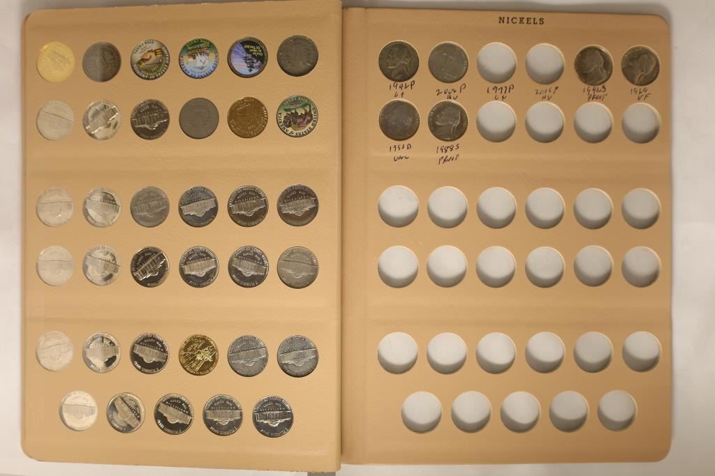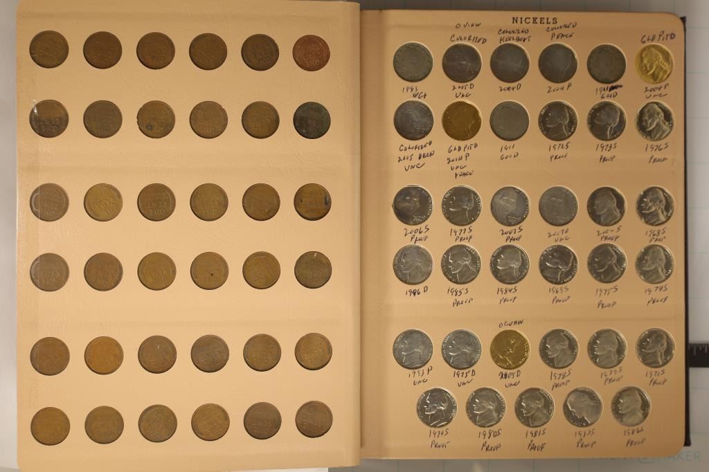 36 LINCOLN WHEAT CENTS DATED 1942-1957, 3 LIBERTY "V" NICKELS (1883 NO CENTS EXTRA FINE AND 2-1911), JEFFERSON NICKELS INCLUDING: 1-1942-P 35% SILVER JEFFERSON WAR NICKEL- 3 GOLD ELECTROPLATED -4 COLORIZED AND 30 OTHERS