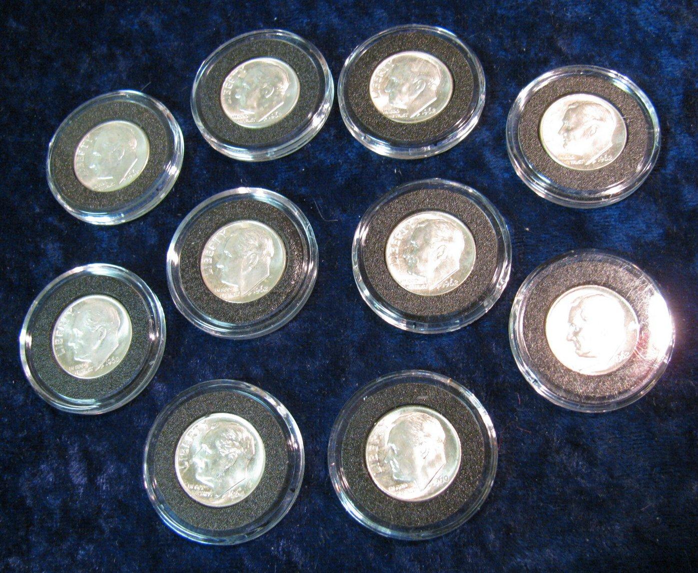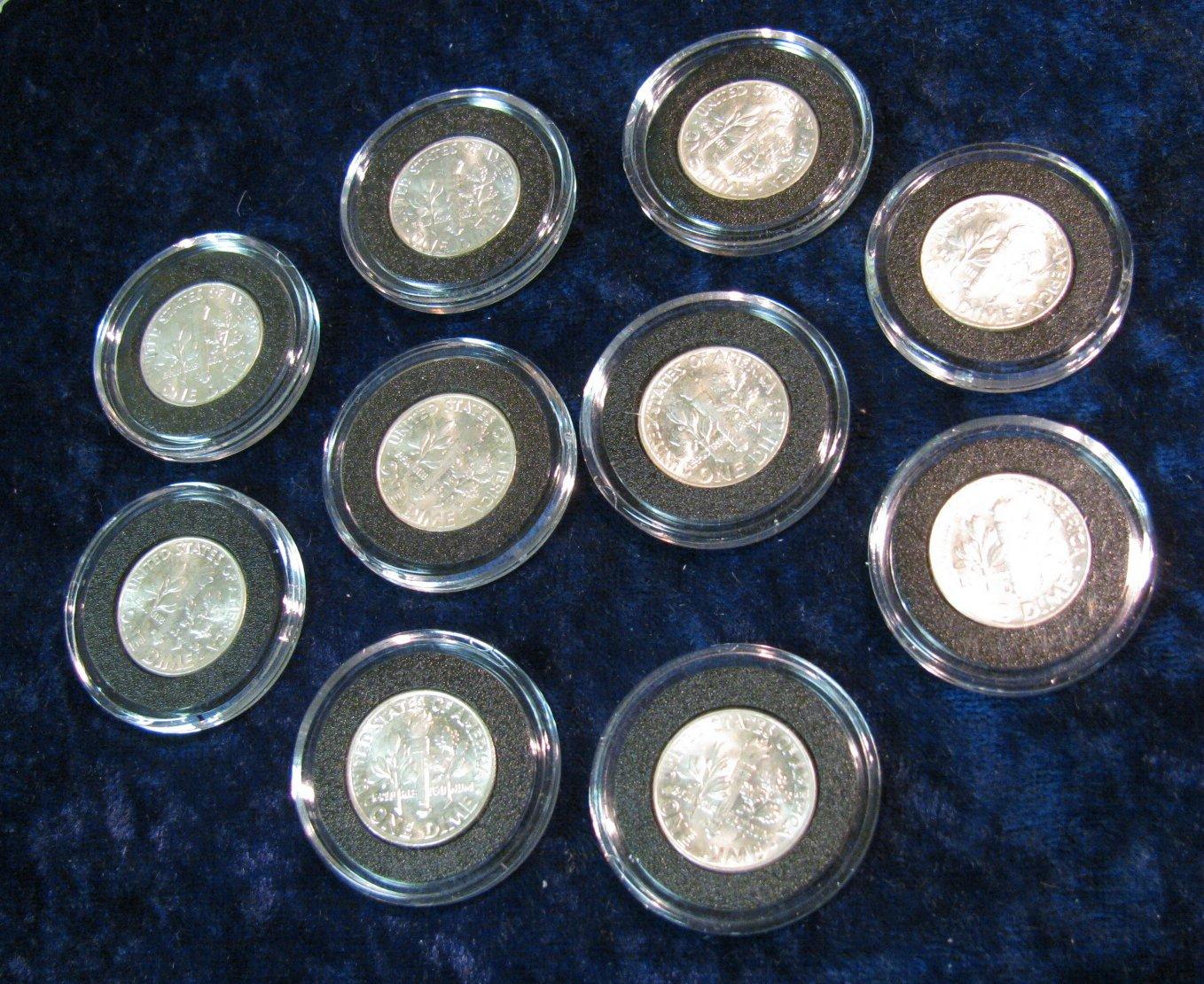 771. (10) Gem BU Silver Roosevelt Dimes in airtight holders.