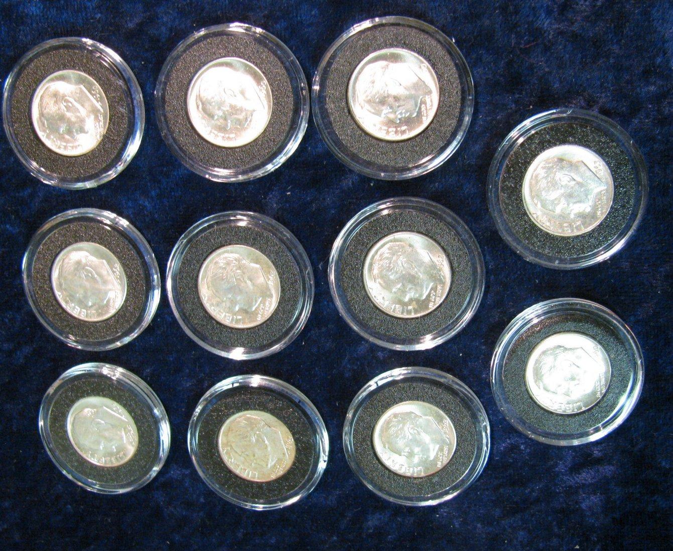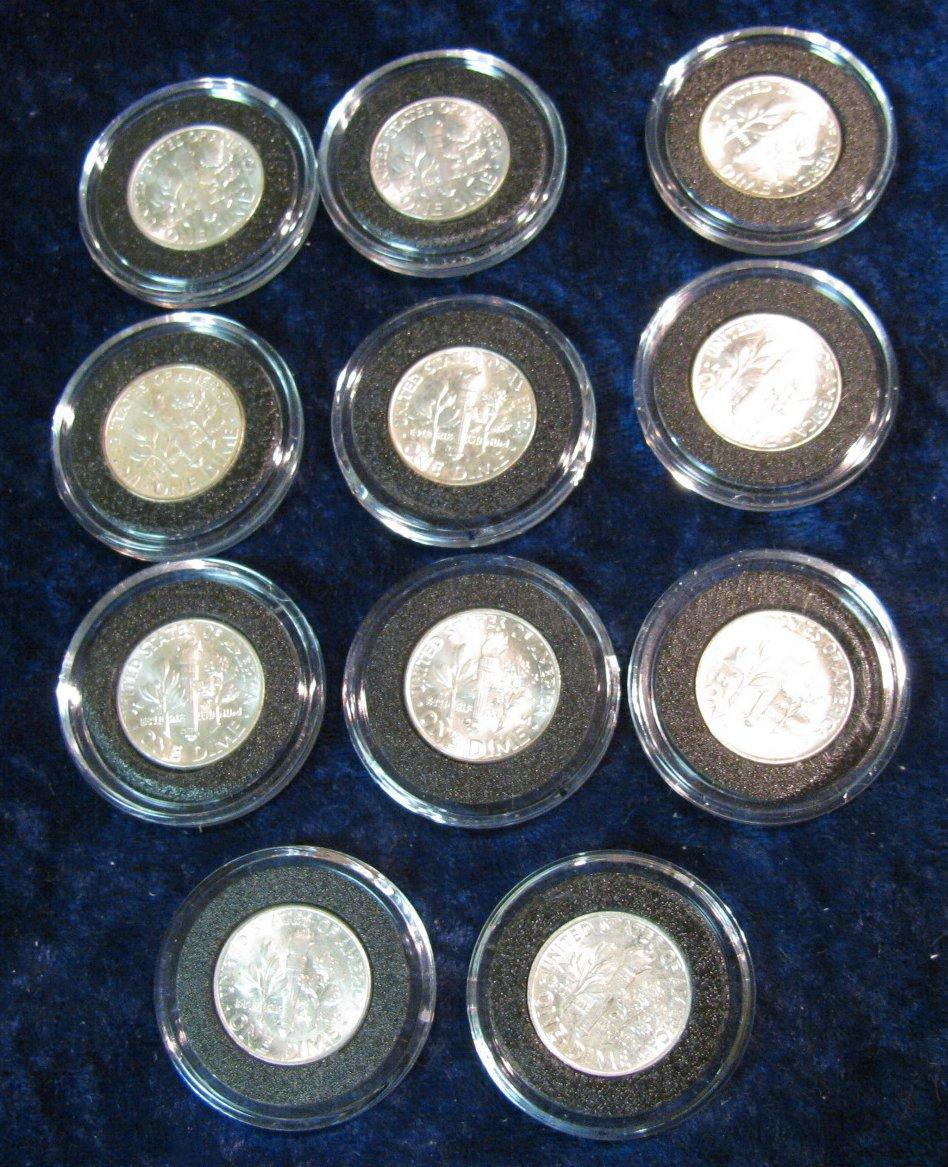 772. (11) Gem BU Silver Roosevelt Dimes in airtight holders.