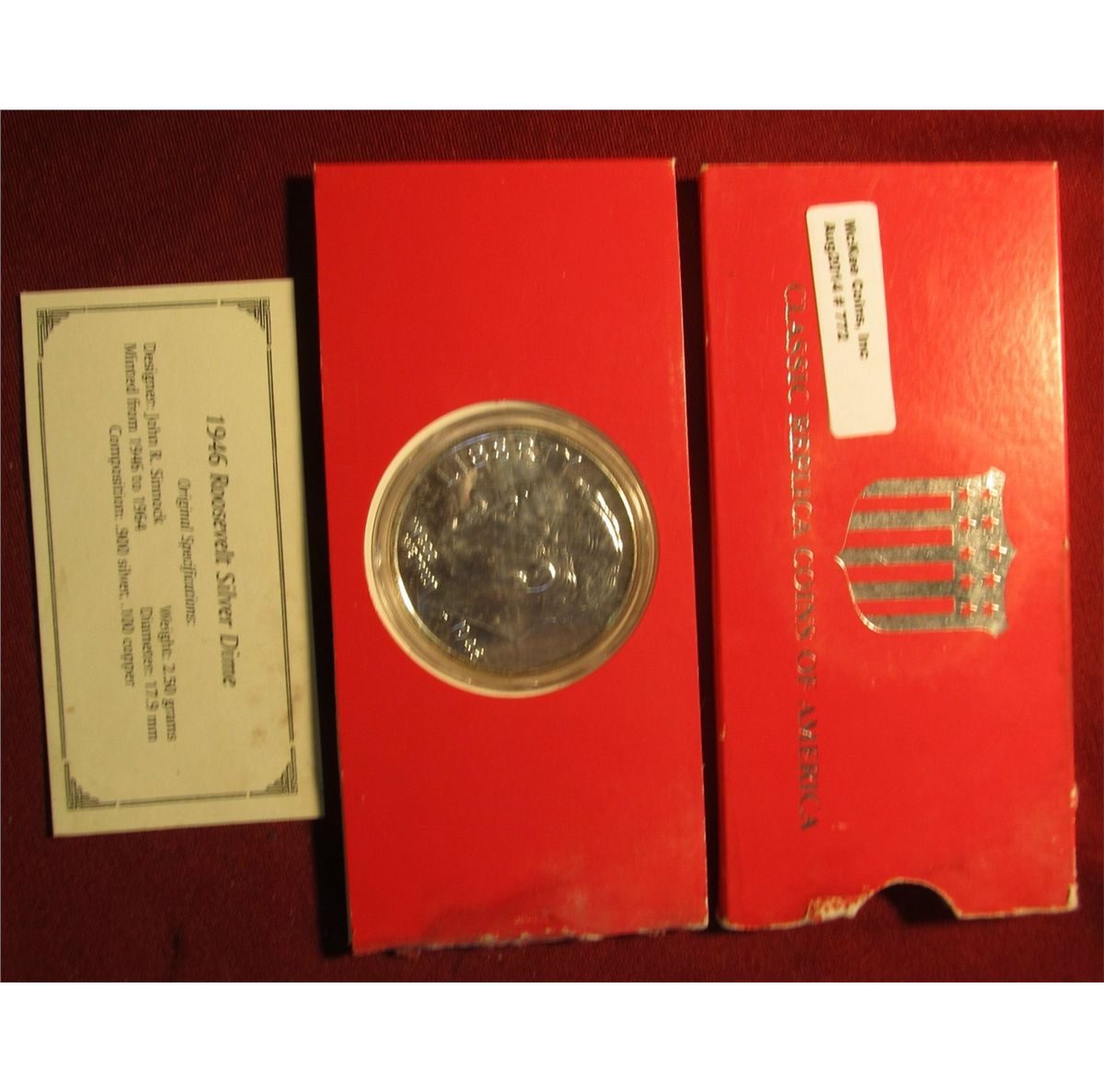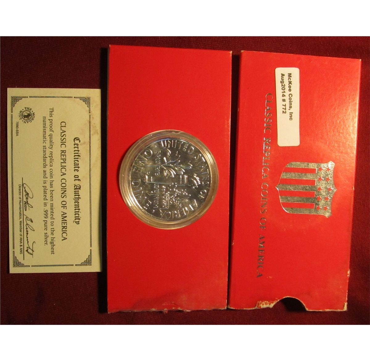 772. Large size 1946 Roosevelt Dime Copy in holder, plated in .999 Fine Silver.